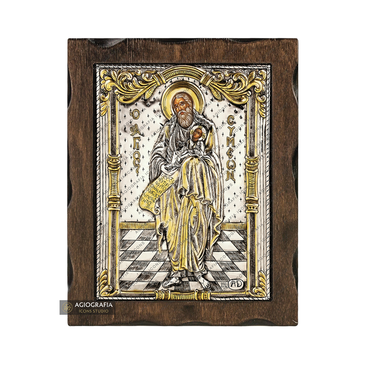 A mounting point is placed at the back of the icon, along with the Certificate of Authenticity and Quality. Each of our icons bears the studio's unique title and logo.