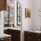 At the back of the icon, a mounting point is installed, accompanied by our Certificate of Authenticity and Quality. All of our artworks bear the studio’s distinctive title and logo.