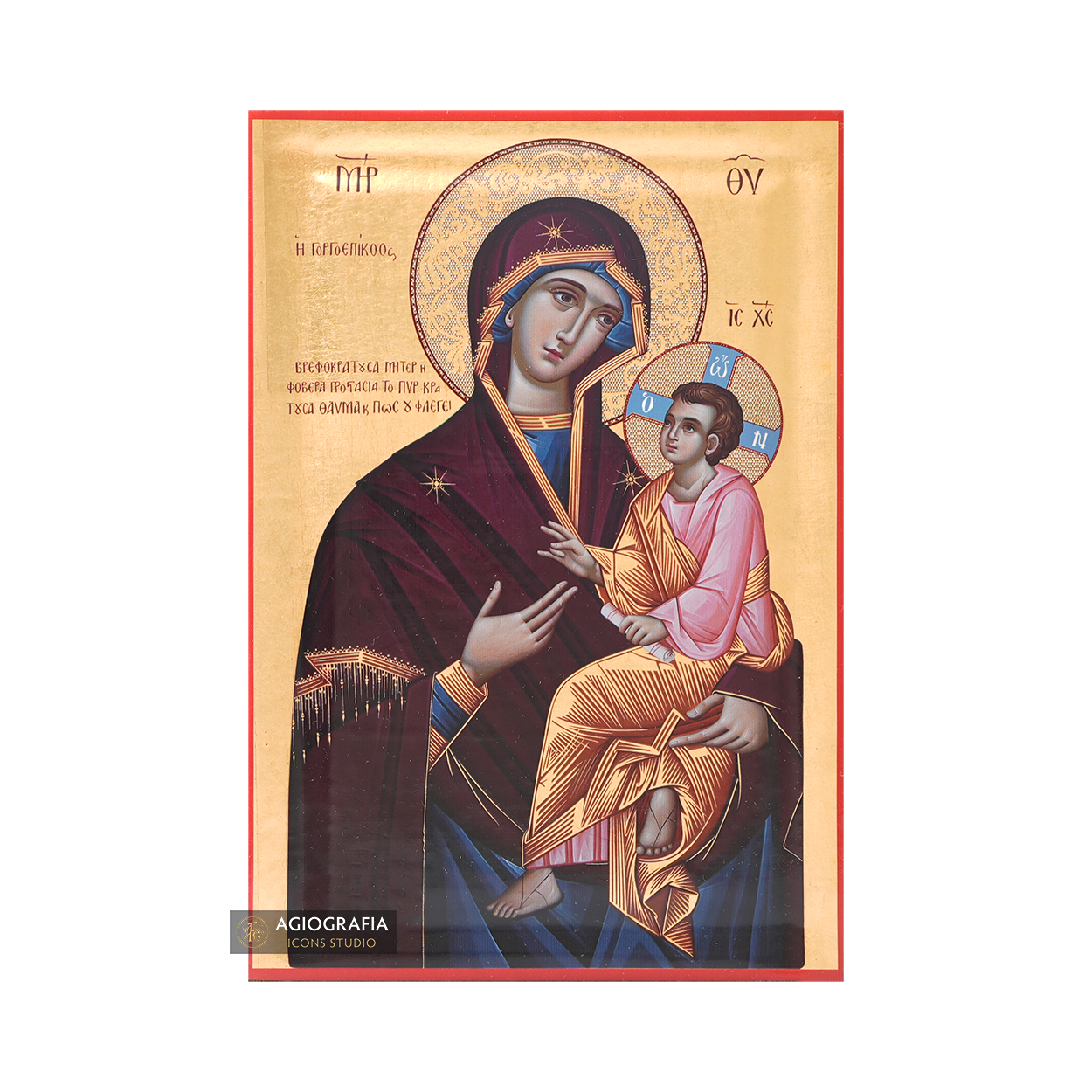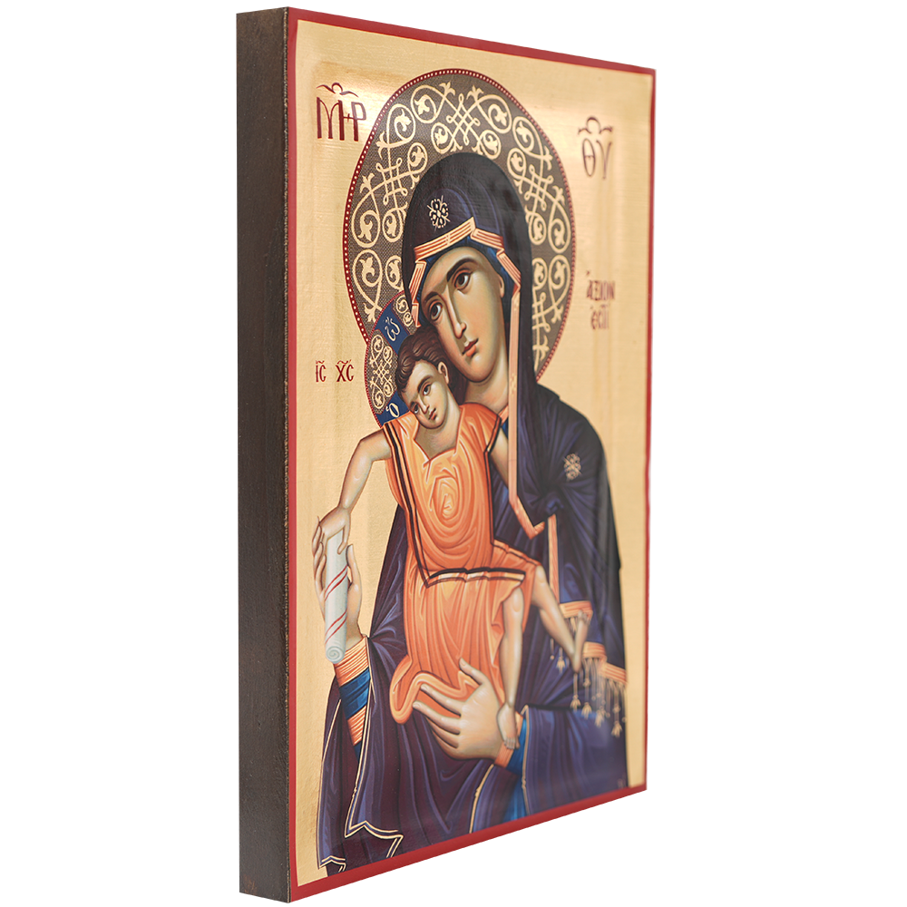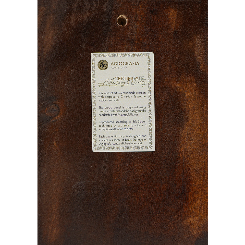 This is an authentic icon crafted according to Byzantine technique and style. All parts are made by hand and only the theme is reproduced using Advanced Silk Screen Technique.