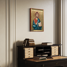 A mounting point is placed at the back of the icon, along with the Certificate of Authenticity and Quality. Each of our icons bears the studio's unique title and logo.