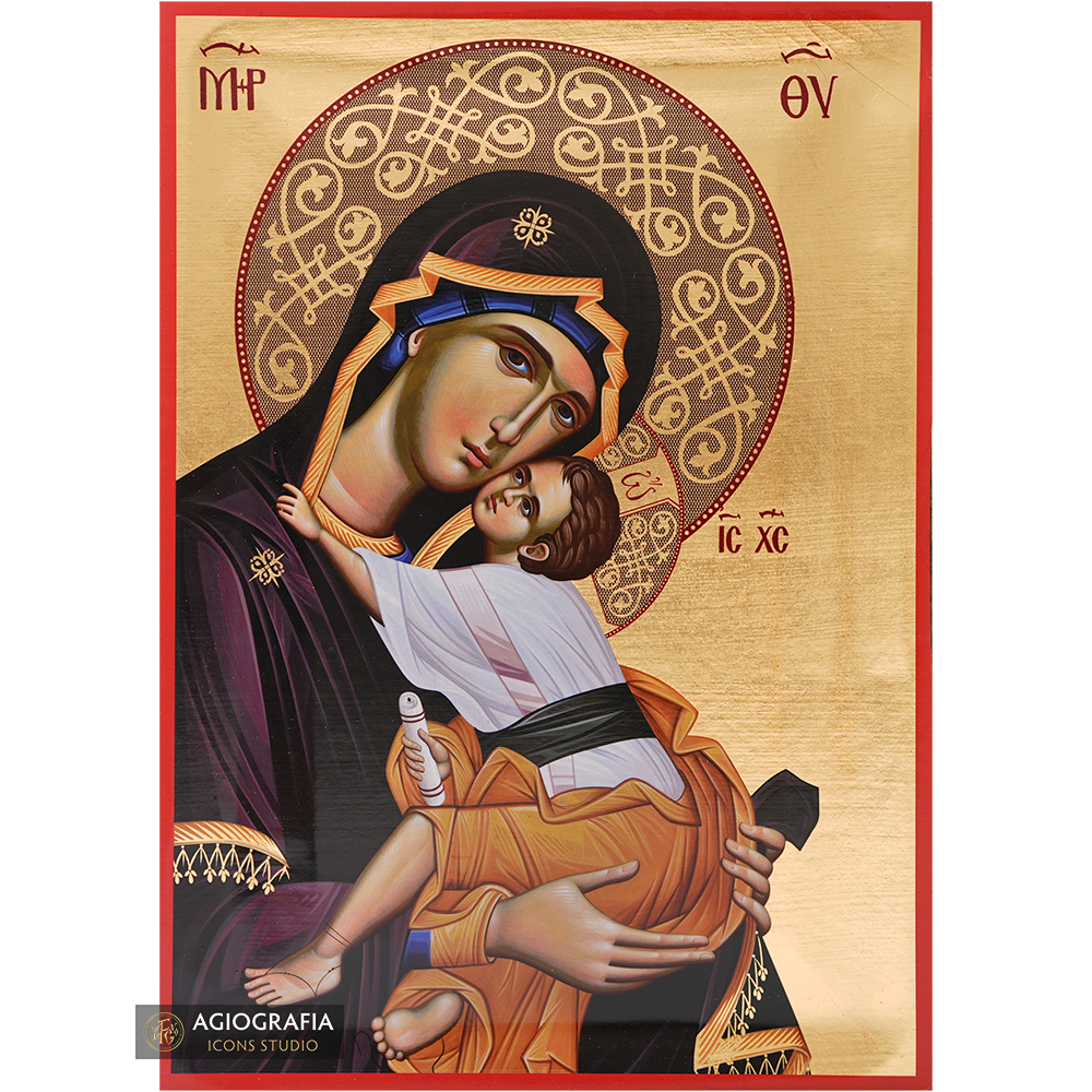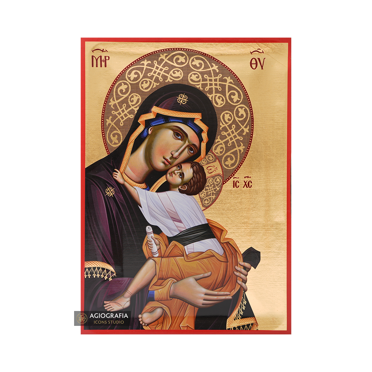Virgin Mary holding Christ Icon with Matte Gold Leaves