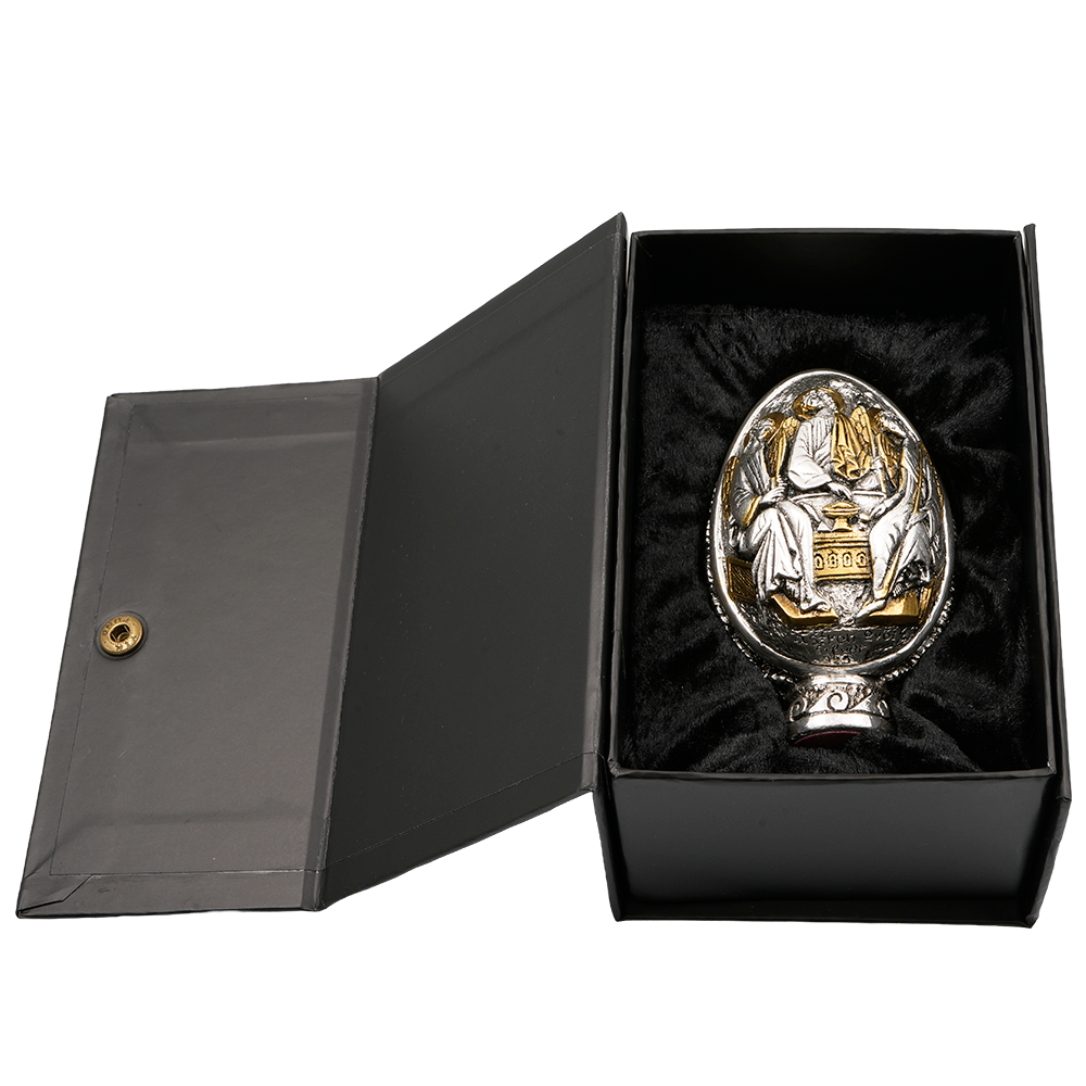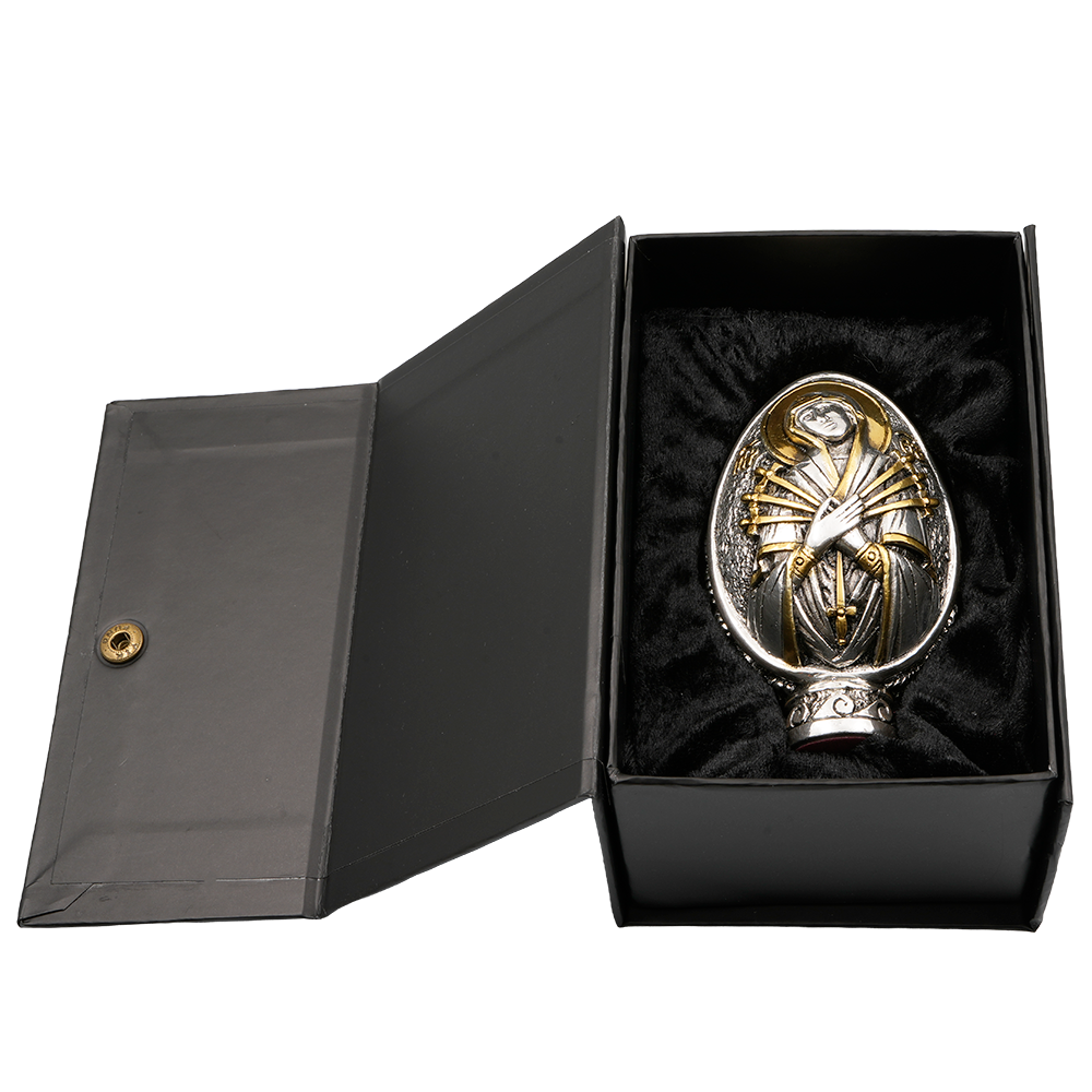 Elevate your Christian collection with this extraordinary sterling silver Holy Trinity - Virgin Mary 7 Swords Egg. A true heirloom artifact which has at one side Holy Trinity and on the other Virgin Mary 7 Swords.