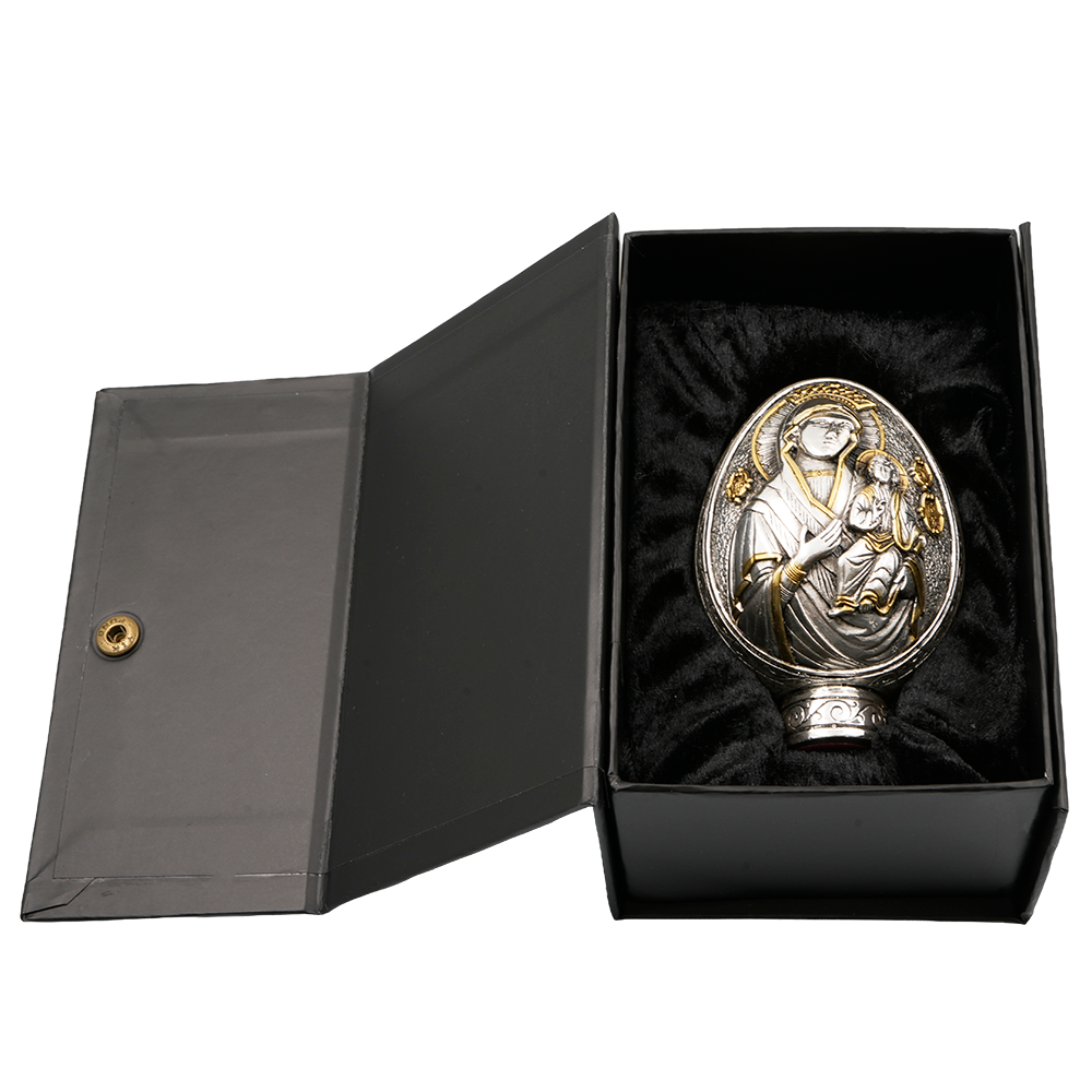 Elevate your Christian collection with this extraordinary sterling silver Jesus Christ - Virgin Mary Egg. A true heirloom artifact which has at one side Jesus Christ and on the other Virgin Mary.