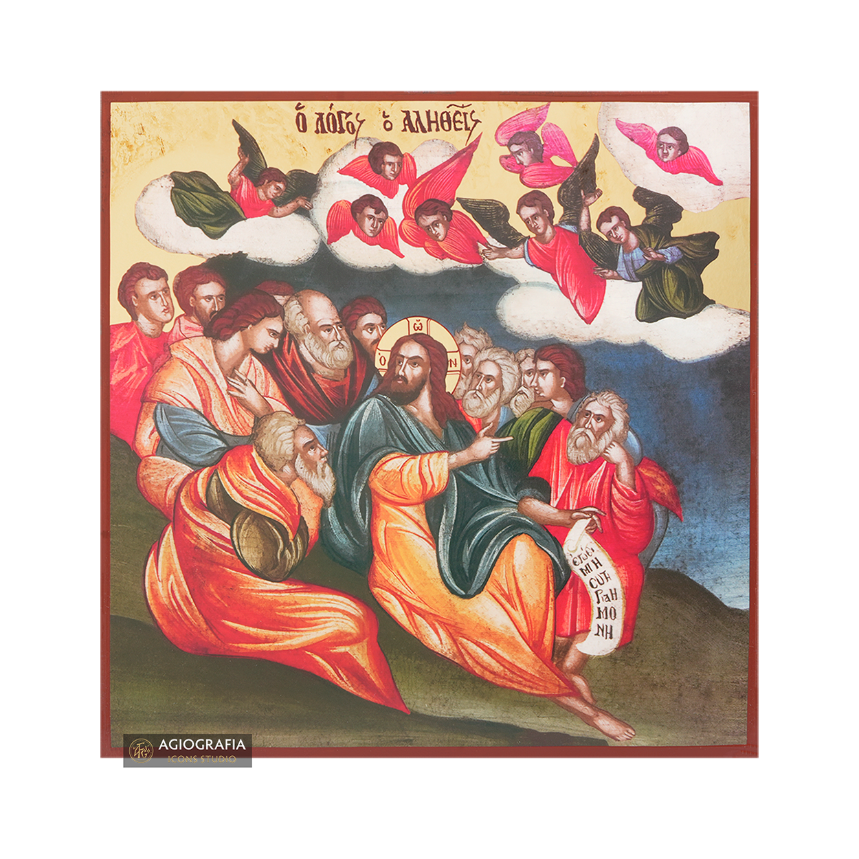This is an authentic icon crafted according to Byzantine technique and style. All parts are made by hand and only the theme is reproduced using Gold Foil Print Technique.