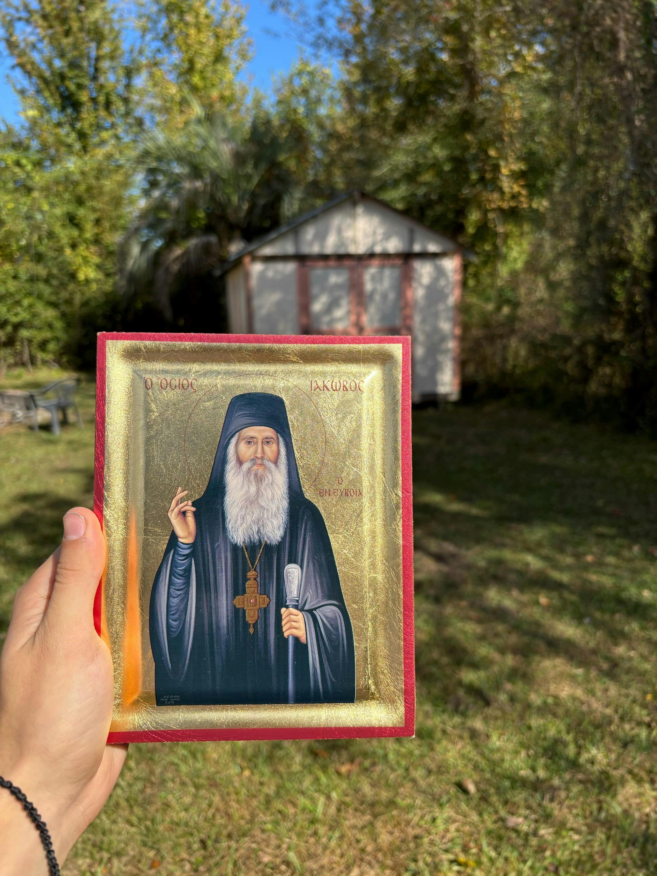St Jacob Tsalikis from Evia Greek Orthodox Wood Icon with Gold Leaf