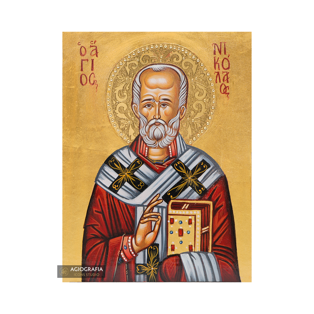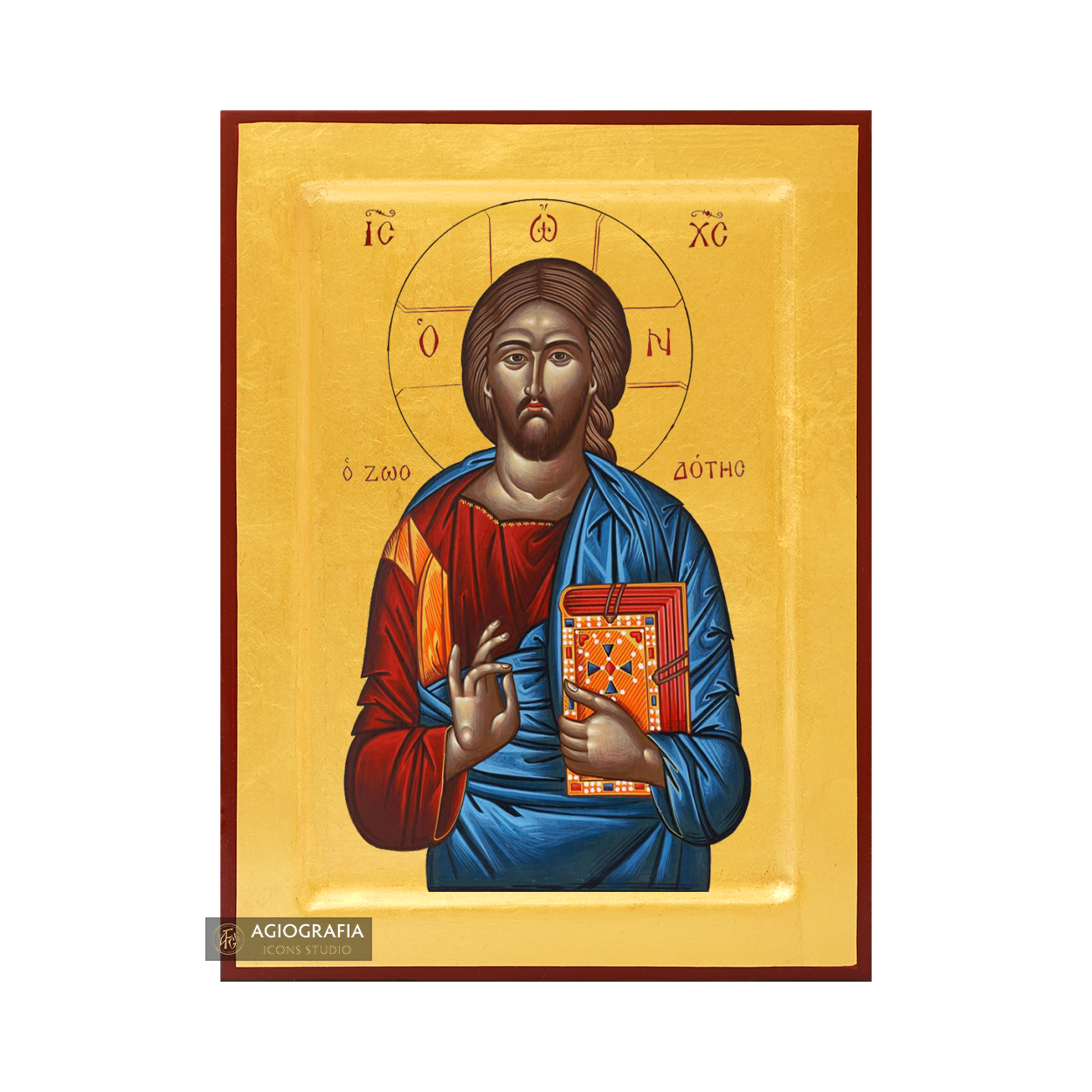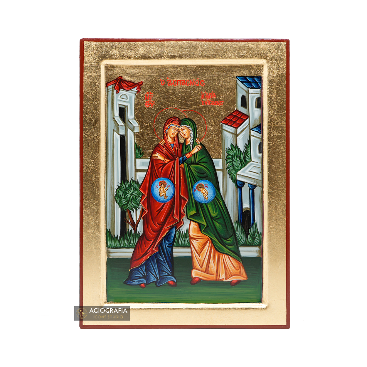 A mounting point is placed at the back of the icon, along with the Certificate of Authenticity and Quality. Each of our icons bears the studio's unique title and logo.