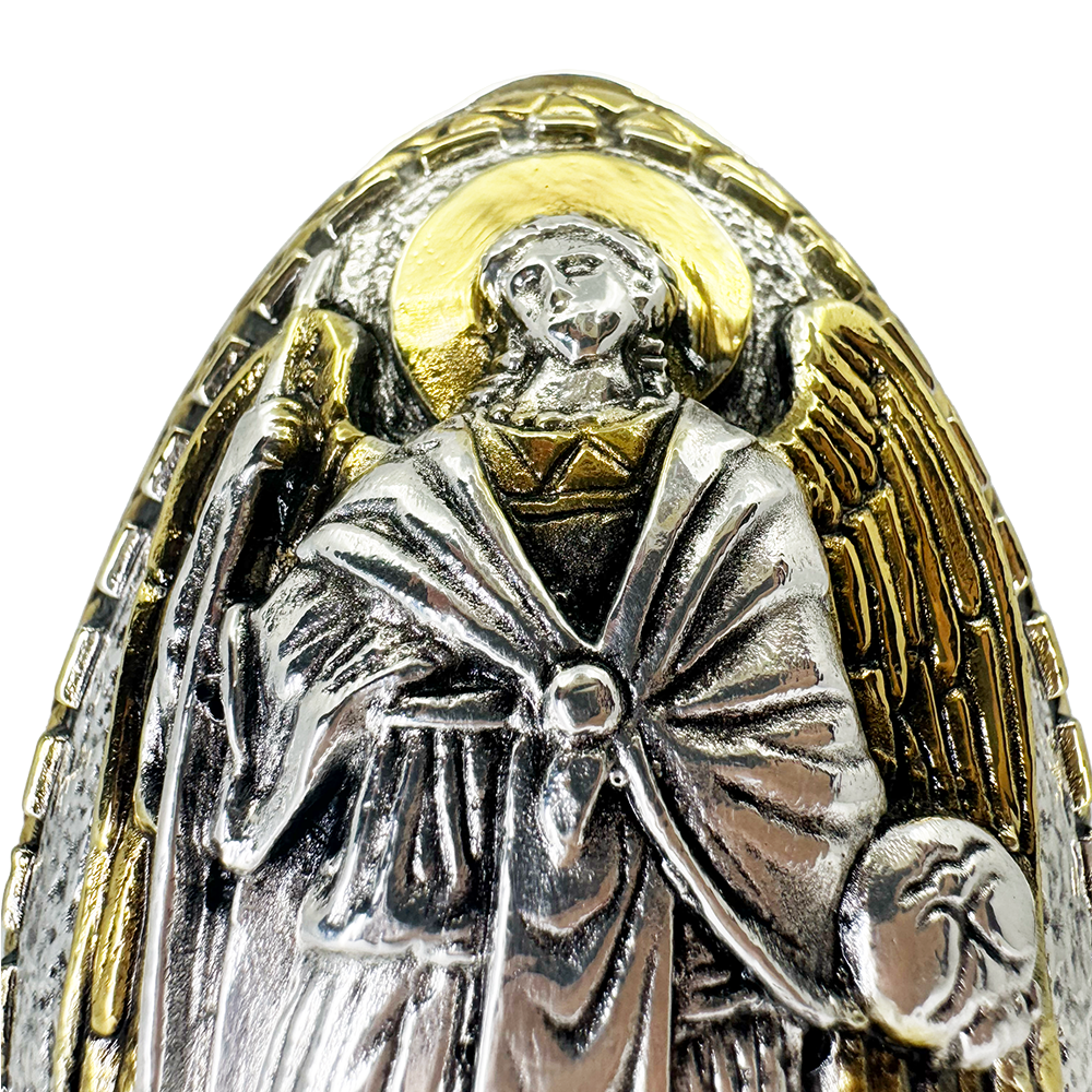 Elevate your Christian collection with this extraordinary sterling silver Archangels Michael & Gabriel Egg. A true heirloom artifact which has at one side Archangel Michael and on the other Archangel Gabriel.