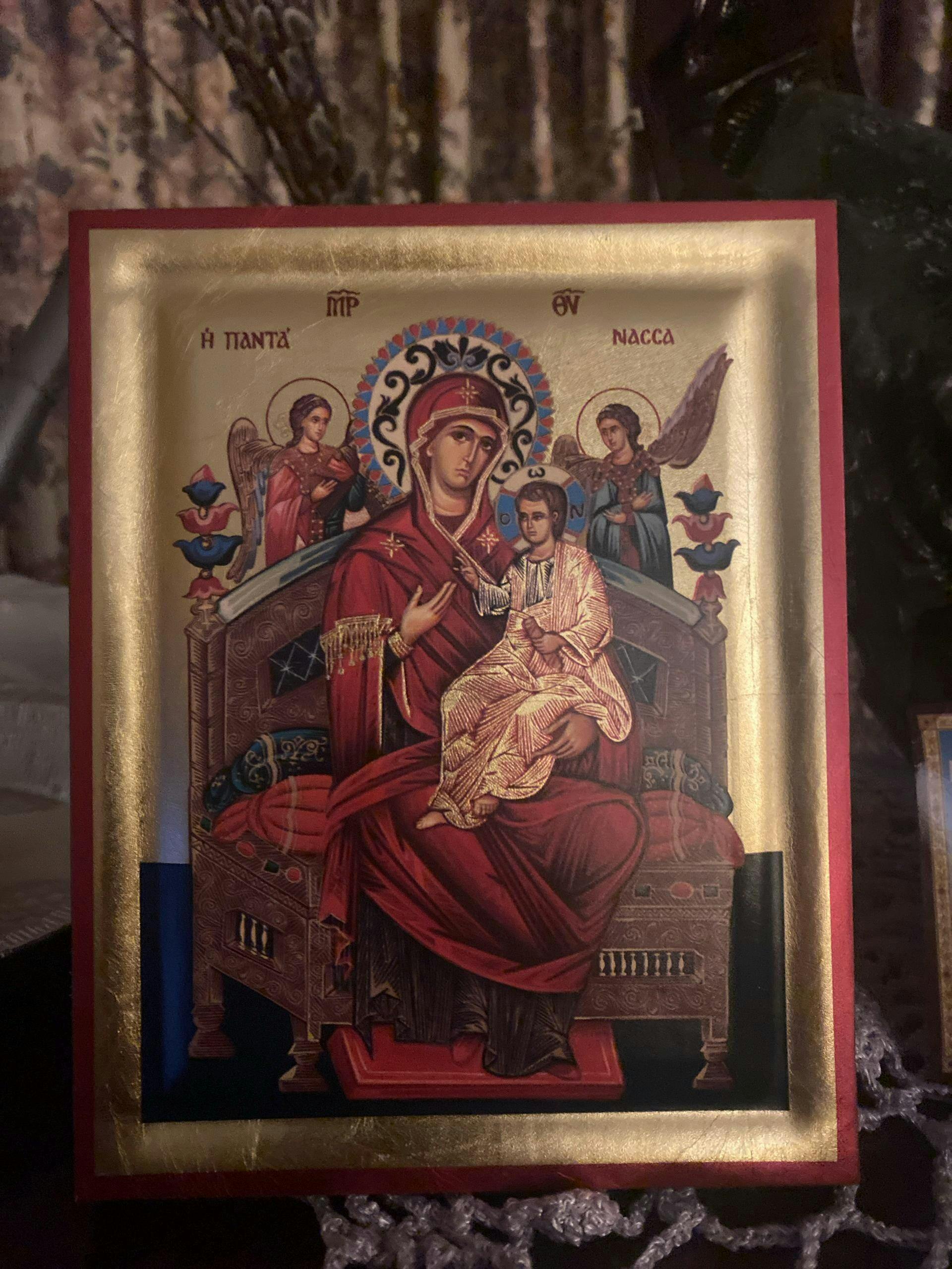 Αυτή είναι μια αυθεντική εικόνα, φιλοτεχνημένη σύμφωνα με τη βυζαντινή τεχνική και παράδοση. Όλα τα μέρη κατασκευάζονται στο χέρι, ενώ μόνο το θέμα αναπαράγεται με τη μέθοδο Premium Museum Standards Technique.