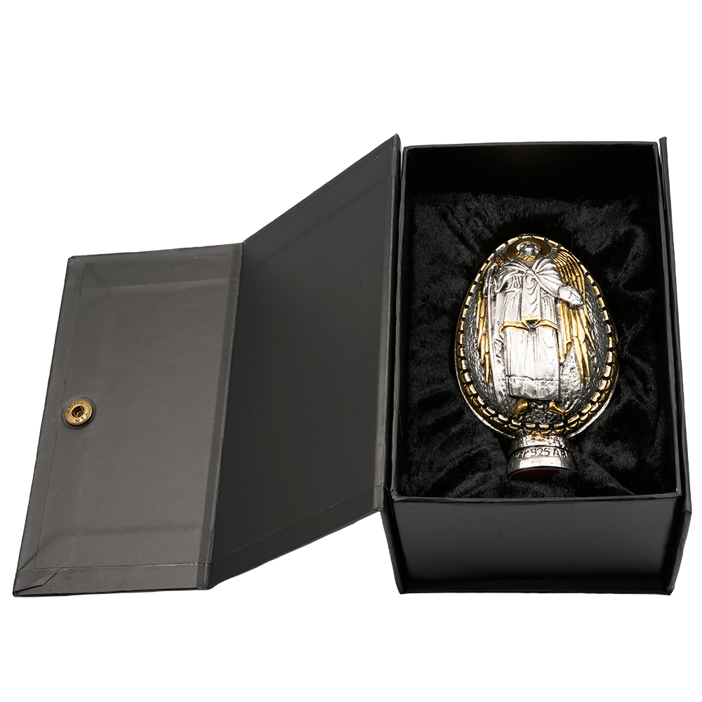 Elevate your Christian collection with this extraordinary sterling silver Archangels Michael & Gabriel Egg. A true heirloom artifact which has at one side Archangel Michael and on the other Archangel Gabriel.