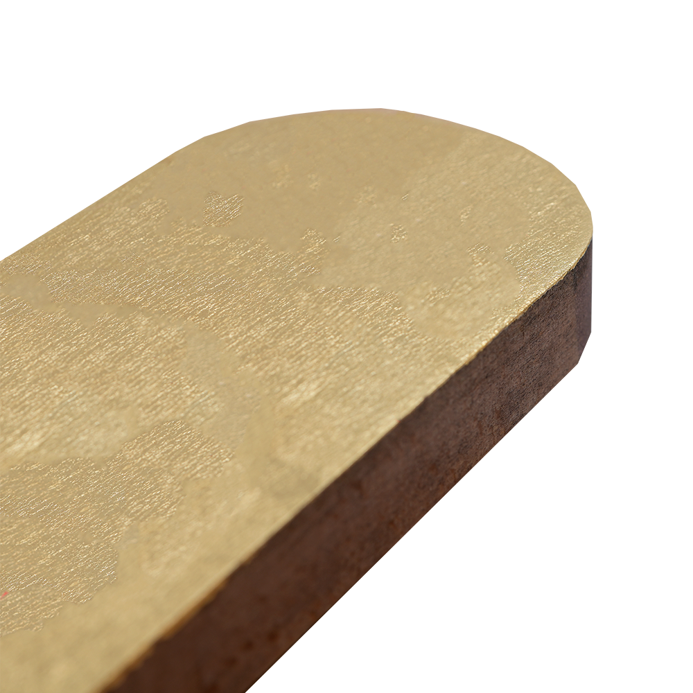 Once the wood panel is cut to the desired dimensions, our crafters carefully apply the Matte Gold Leaves into the prepared surface.