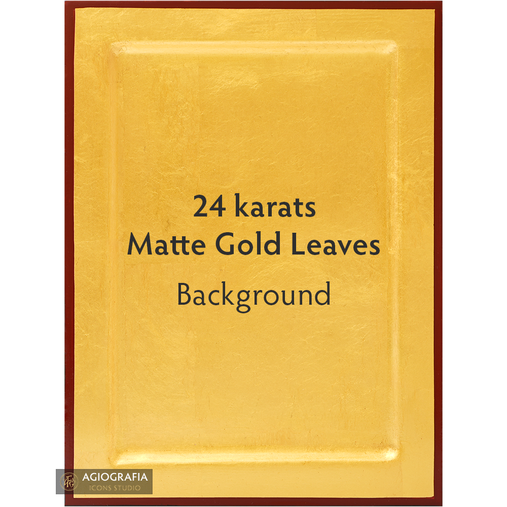 This is a 100% Handwritten artwork crafted according to Byzantine technique and style, totally painted by hand with 24 karats Gold Leaves background. Once the theme is painted by our skilled craftsmen, a mounting point and the Certificate of Authenticity and Quality are installed at the back of the icon.