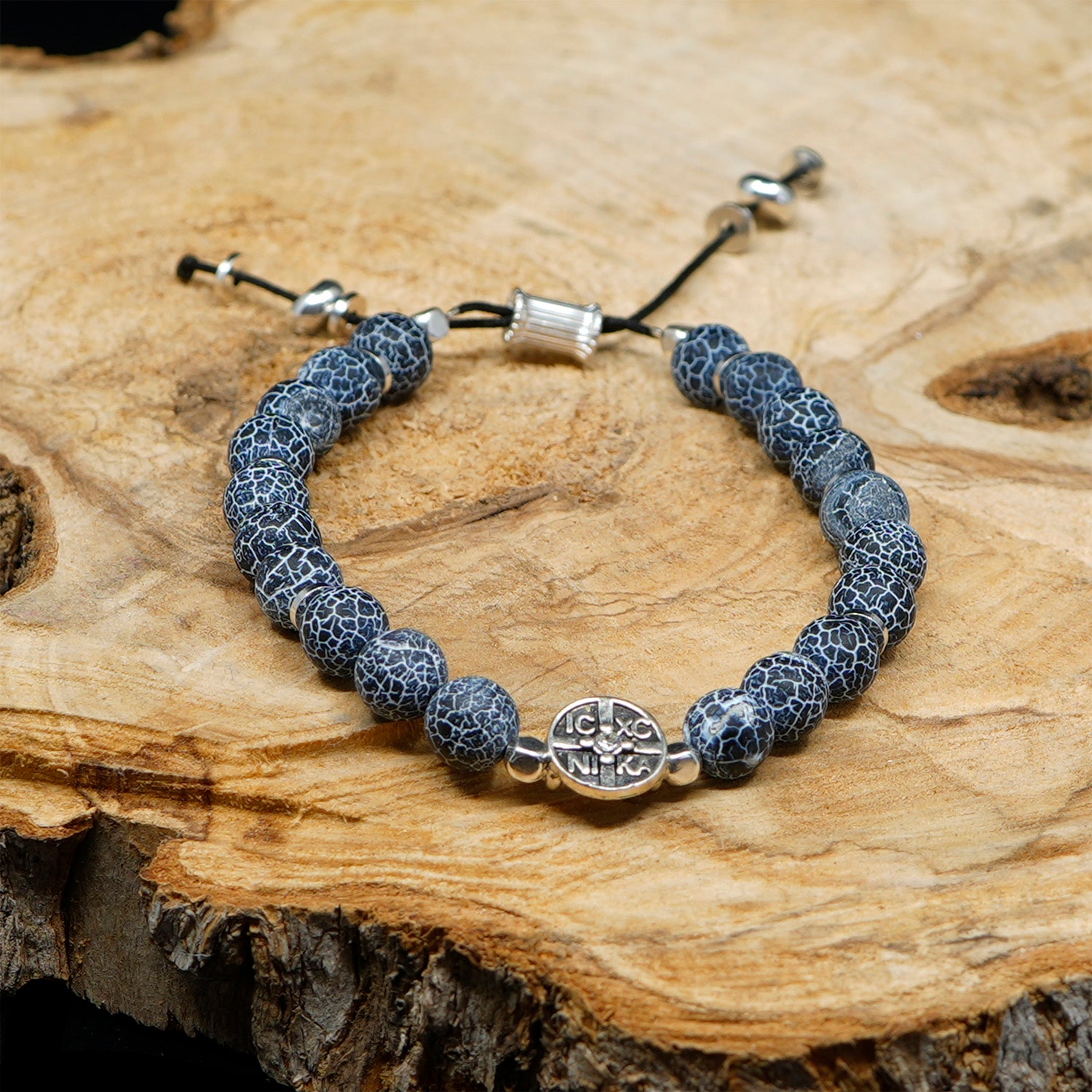 Elevate your faith and style with this elegant Christian bracelet featuring 6mm black agate stones, naturally weathered for a unique crackled texture. The 24k gold-plated cross adorned with zircon adds a radiant touch of spiritual significance. Designed for comfort and versatility, the adjustable band ensures a perfect fit for every wrist. This bracelet is a meaningful accessory that blends timeless beauty with personal devotion.