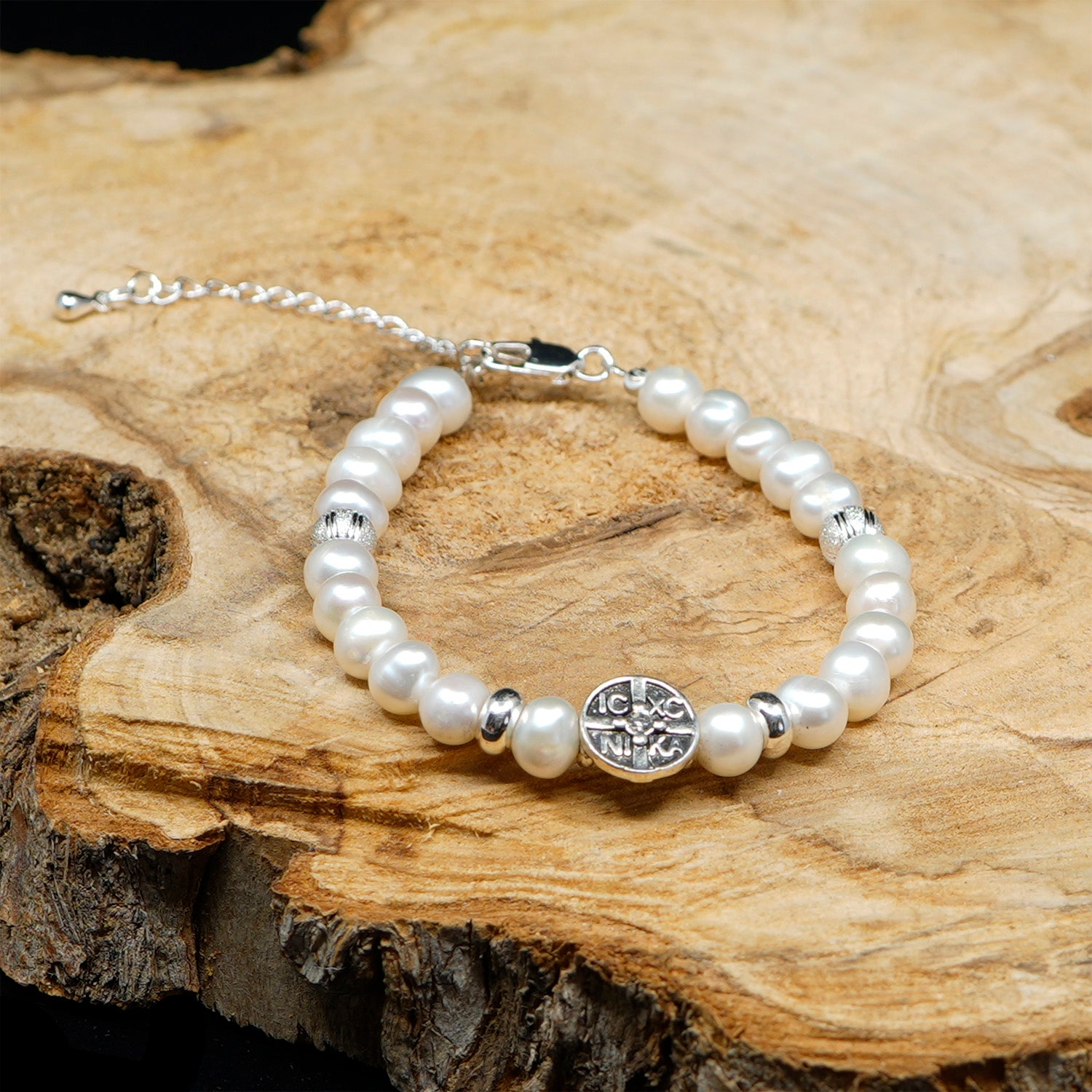 Pearls [Creamy White] Platinum Plated & Sterling Silver Christian Woman Bracelet