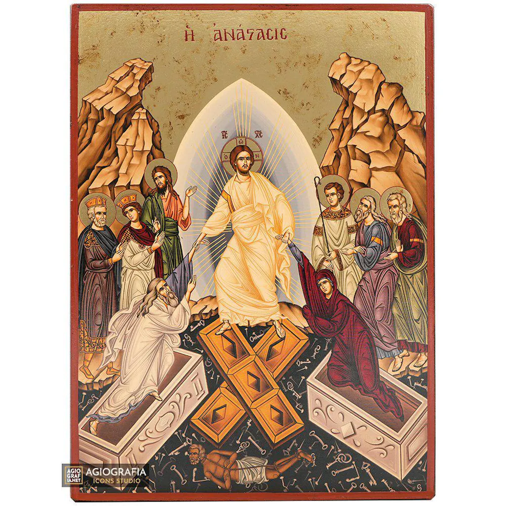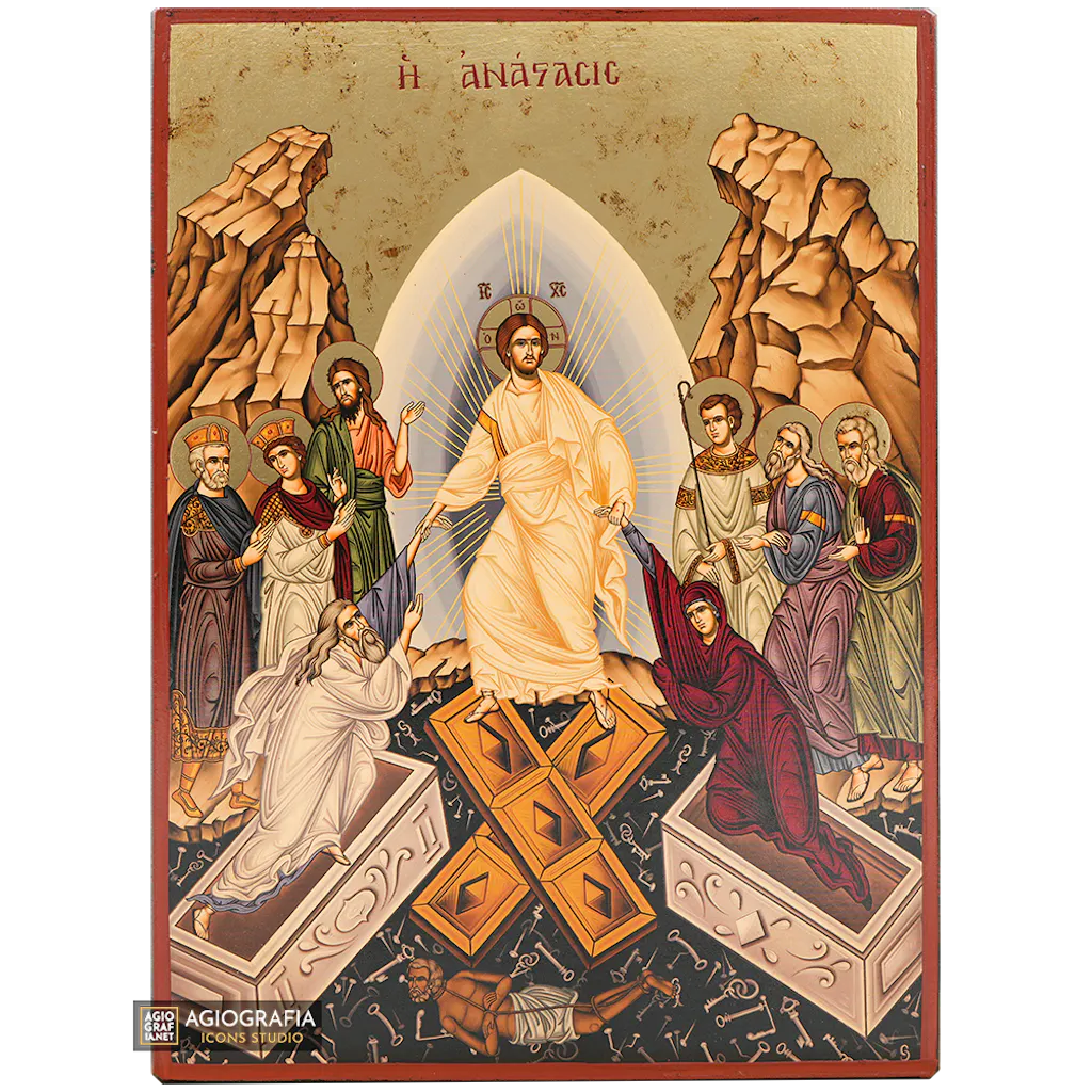 Αυτή είναι μια αυθεντική εικόνα, φιλοτεχνημένη σύμφωνα με τη βυζαντινή τεχνική και παράδοση. Όλα τα μέρη κατασκευάζονται στο χέρι, ενώ μόνο το θέμα αναπαράγεται με την τεχνική της Χρυσοτυπίας.