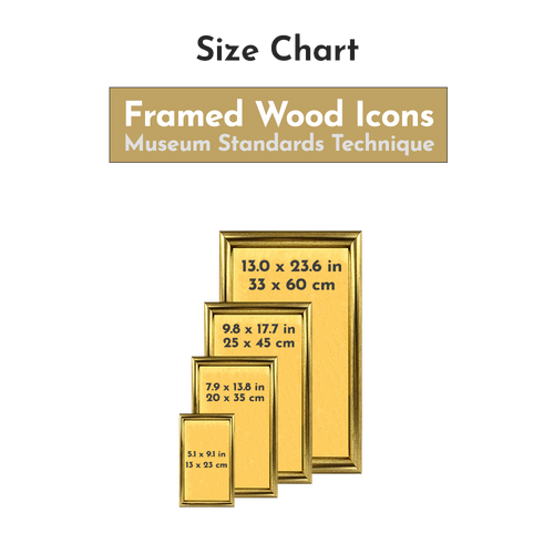 Once the wood panel is cut to the desired dimensions, our skilled craftsmen meticulously apply the 22 karats Gold Leaves on the background. Then the theme is directly printed on the prepared surface. Finally the icon is placed into a wooden frame with protecting glass resulting to an exquisite work of art.