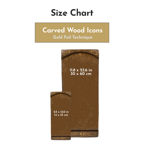 Αυτή η εικόνα είναι κατασκευασμένο από ξύλο. Το πάνελ είναι σκαλισμένο στο χέρι και το θέμα αναπαράγεται σύμφωνα με την τεχνική της χρυσοτυπίας. Το σχήμα του ξύλου μπορεί να έχει μικρές διαφορές από τις φωτογραφίες που εμφανίζονται εδώ. Μικρές λεπτομέρειες όπως το όνομα του Αγίου και μερικά διακοσμητικά σχήματα είναι όλα φτιαγμένα στο χέρι και υπάρχει ένα σημείο στήριξης στο πίσω μέρος. Κάθε εικόνα δημιουργείται μετά την παραγγελία σας και η διαδικασία προετοιμασίας διαρκεί περίπου 4-9 εργάσιμες ημέρες.