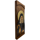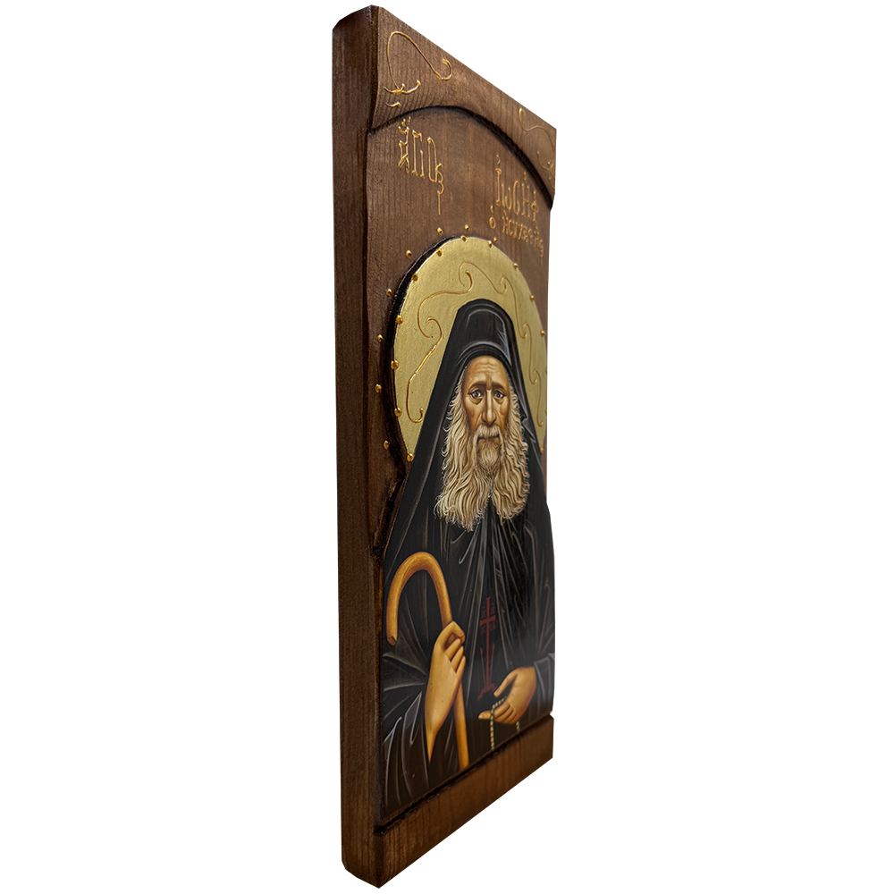 At the back of the icon, a mounting point is installed, accompanied by our Certificate of Authenticity and Quality. The hand carved wood shape may have slight differences from the photos shown here. Small details as the Saint’s name and some decorative shapes are also made by hand. All of our artworks bear the studio’s distinctive title and logo.