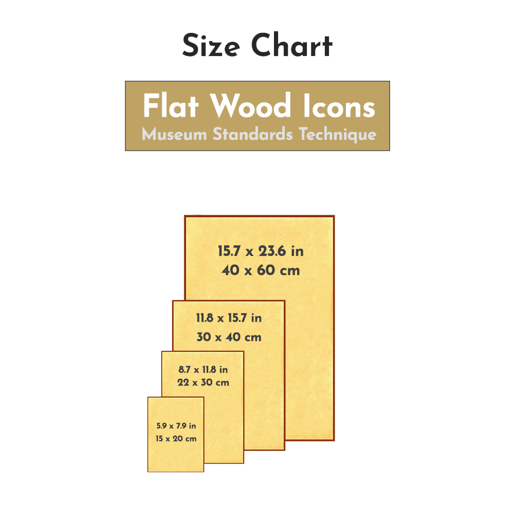 A mounting point is placed at the back of the icon, along with the Certificate of Authenticity and Quality. Each of our icons bears the studio's unique title and logo.