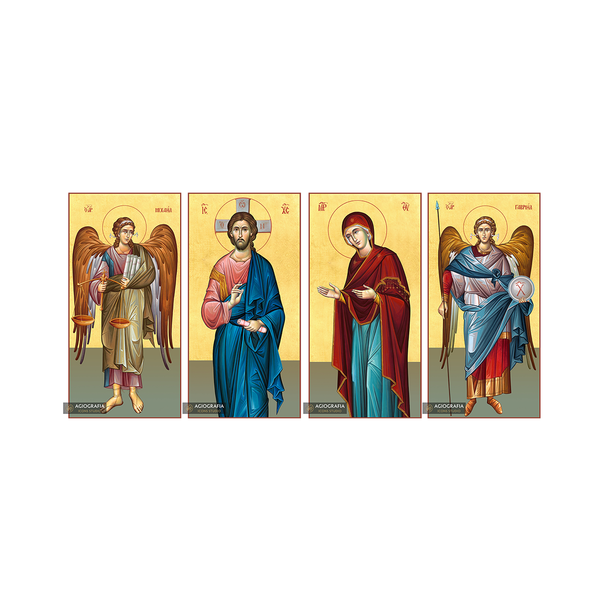 Σετ 4 Εικόνων - Ιησούς Χριστός - Παναγία - Αρχάγγελοι Μιχαήλ & Γαβριήλ