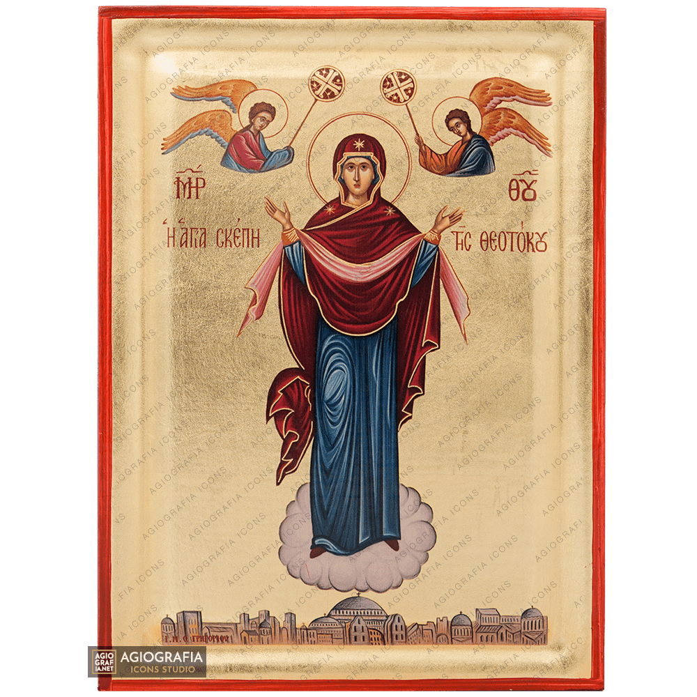 Αυτή είναι μια αυθεντική εικόνα, φιλοτεχνημένη σύμφωνα με τη βυζαντινή τεχνική και παράδοση. Όλα τα μέρη κατασκευάζονται στο χέρι, ενώ μόνο το θέμα αναπαράγεται με τη μέθοδο Premium Museum Standards Technique.