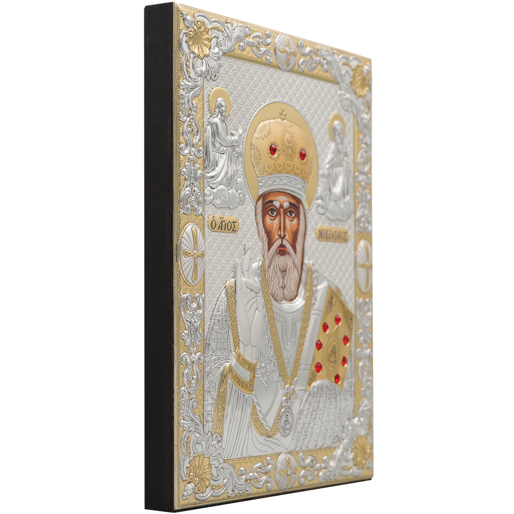 This is an authentic Silver Plated artwork with Gold details, crafted according to Byzantine technique and style. The theme is reproduced using Advanced Silk Screen Technique.