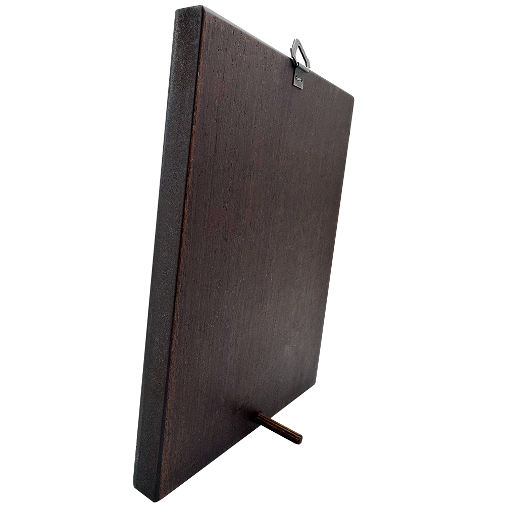 At the back of the icon, a mounting point is installed, accompanied by our Certificate of Authenticity and Quality. At the small sized icons a stand is also available. All of our artworks bear the studio’s distinctive title and logo.
