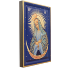 A mounting point is placed at the back of the icon, along with the Certificate of Authenticity and Quality. Each of our icons bears the studio's unique title and logo.