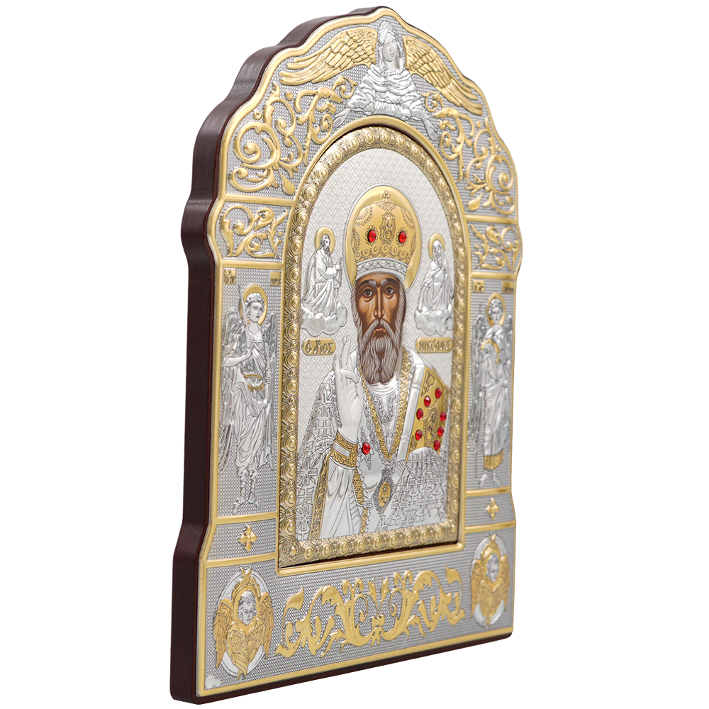 Esta es una auténtica obra de arte chapada en plata con detalles dorados, elaborada según la técnica y el estilo bizantino. El tema se reproduce utilizando la técnica avanzada de serigrafía (Advanced Silk Screen Technique).