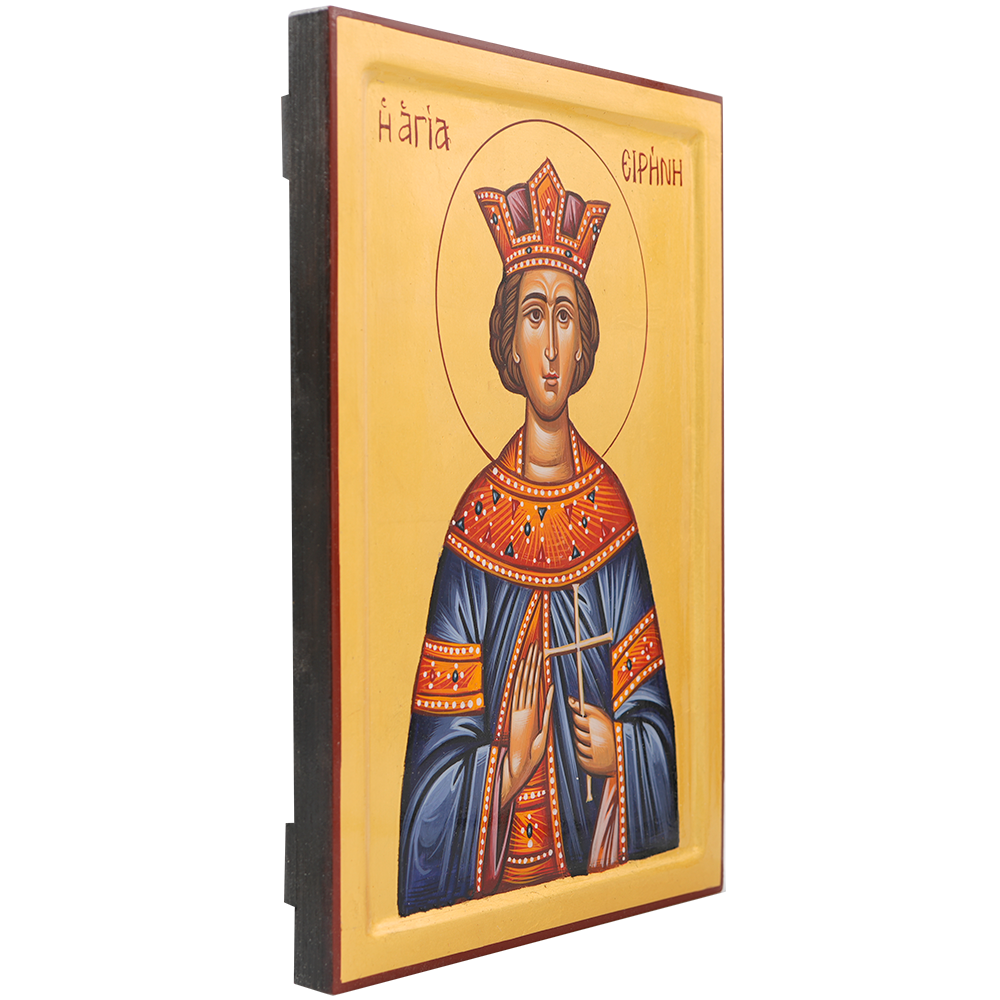 24k Saint Irene Handwritten Orthodox Icon with Gold Leaves
