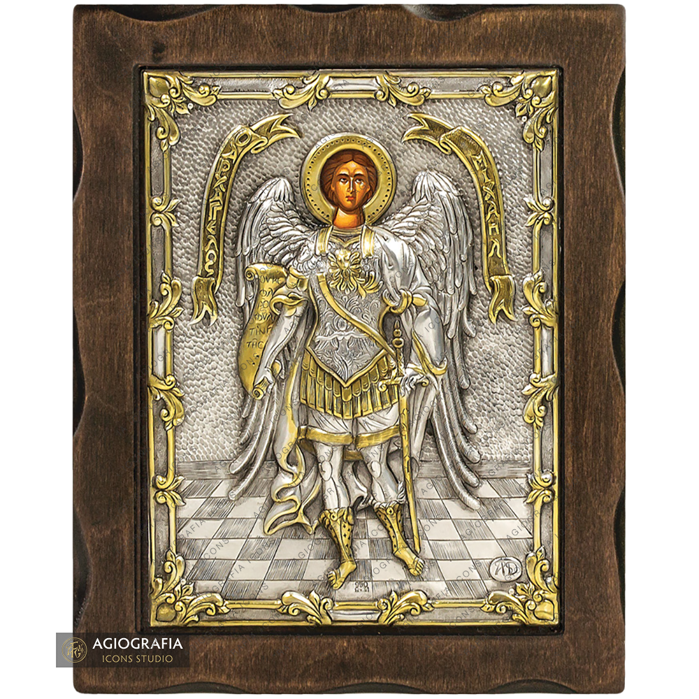 Archangel Michael Pure Silver and 24k Gold Plated Christian Icon