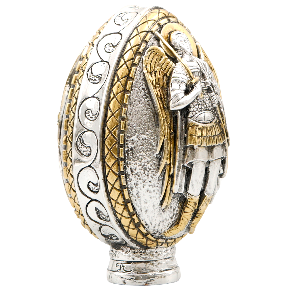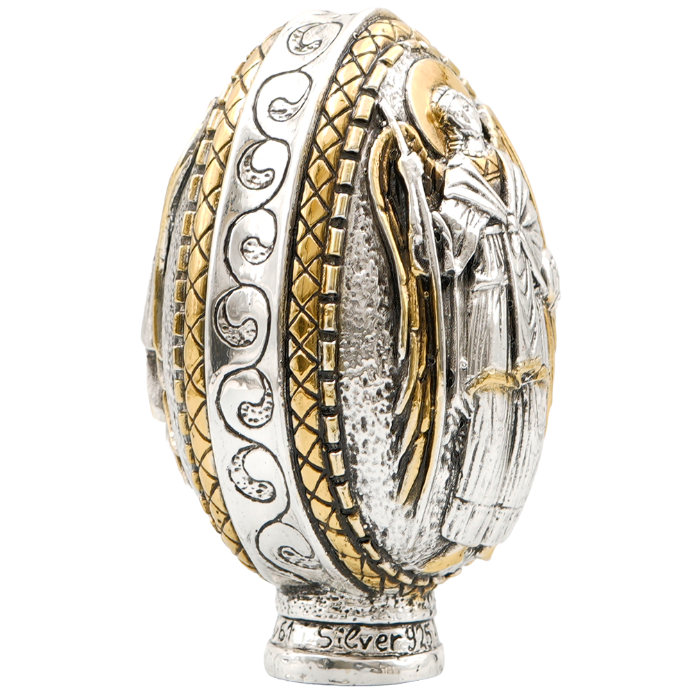 Elevate your Christian collection with this extraordinary sterling silver Archangels Michael & Gabriel Egg. A true heirloom artifact which has at one side Archangel Michael and on the other Archangel Gabriel.