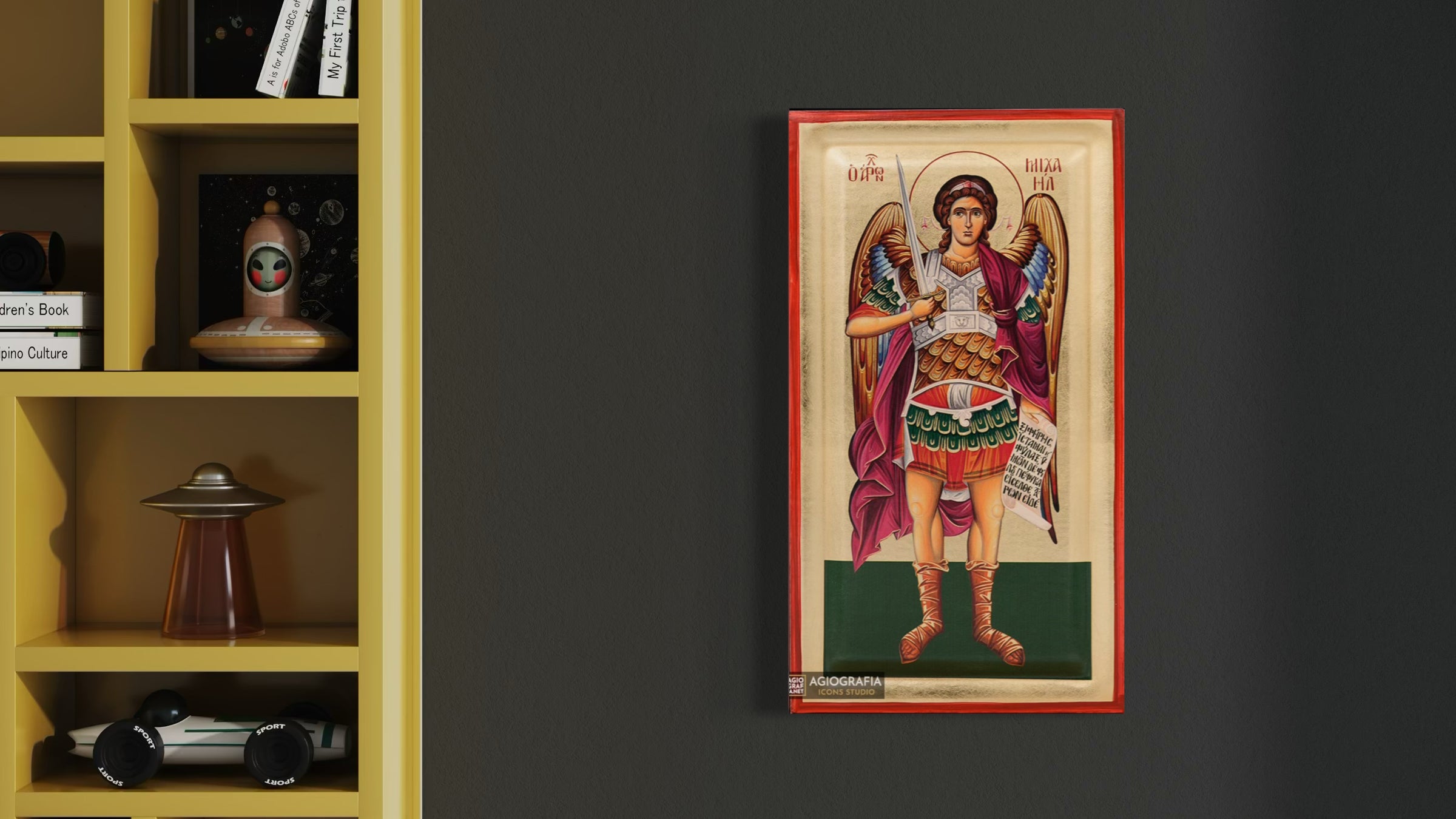 A mounting point is placed at the back of the icon, along with the Certificate of Authenticity and Quality. Each of our icons bears the studio's unique title and logo.