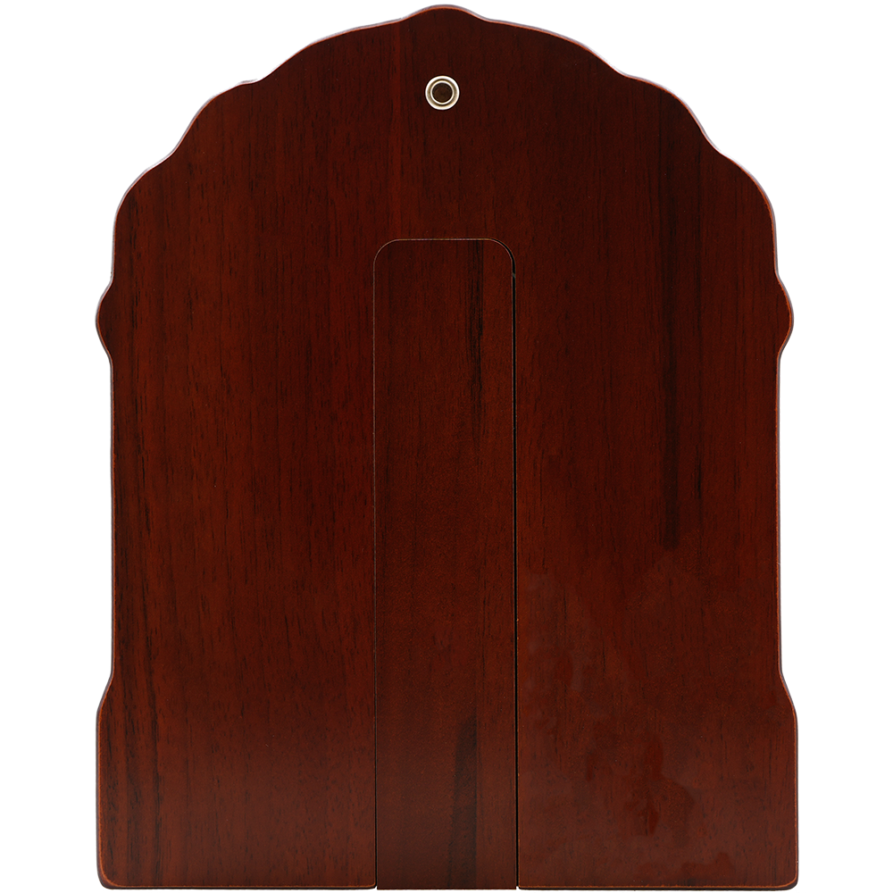 En la parte trasera del icono se coloca un punto de montaje, junto con el Certificado de Autenticidad y Calidad. Cada uno de nuestros iconos lleva el título y el logotipo únicos del estudio.
