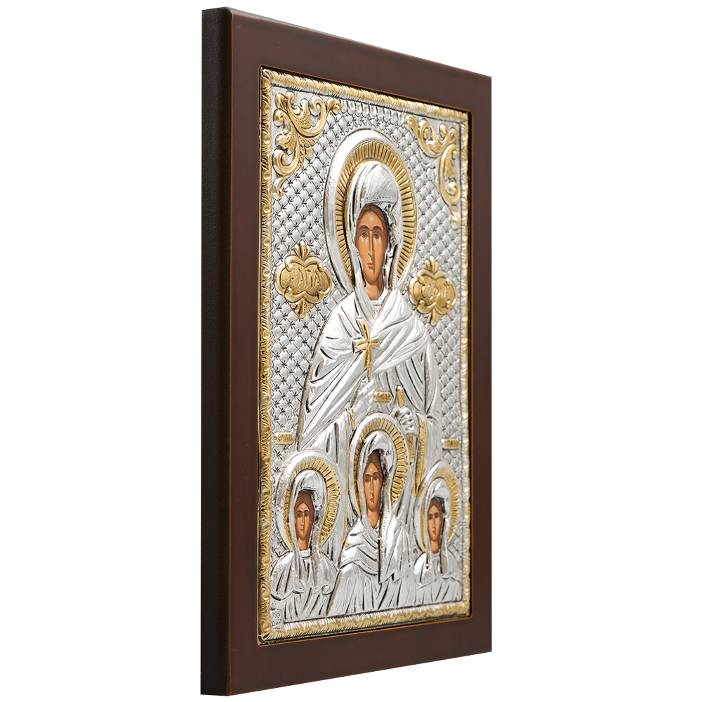 Saint Sophia & her daughters Orthodox Silver Plated Icon on Wood