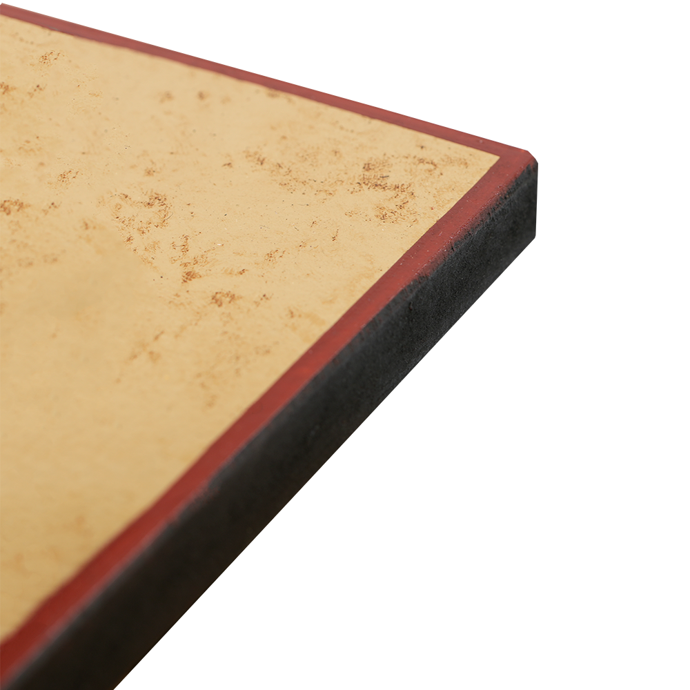 Once the wood panel is cut to the desired dimensions, our crafters carefully apply the Aged Gold Foil into the prepared surface.