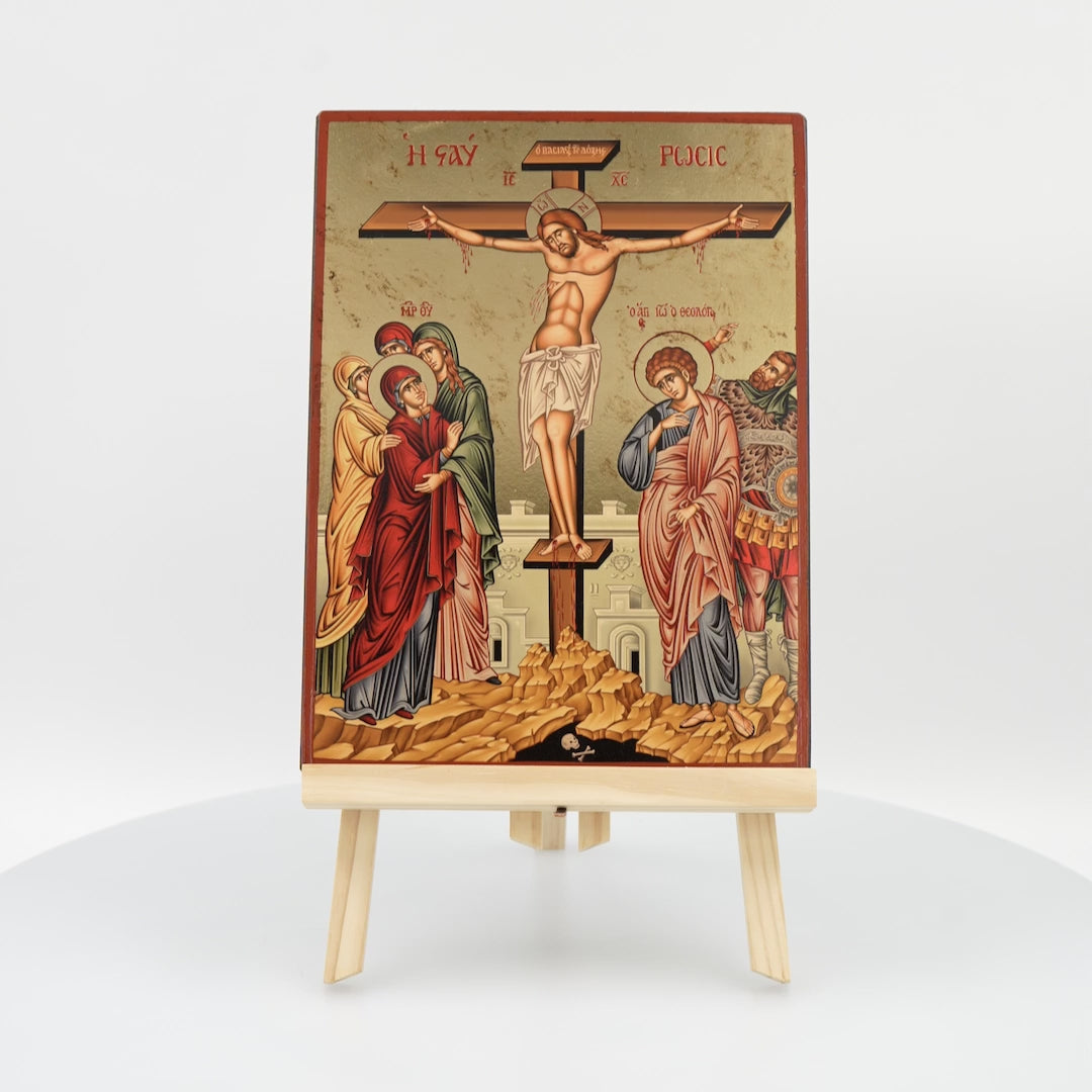 A mounting point is placed at the back of the icon, along with the Certificate of Authenticity and Quality. Each of our icons bears the studio's unique title and logo.