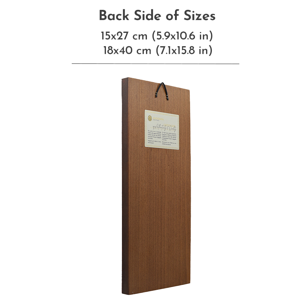 Once the wood panel is cut to the desired dimensions, our crafters carefully apply the Matte Gold Leaves into the prepared surface.