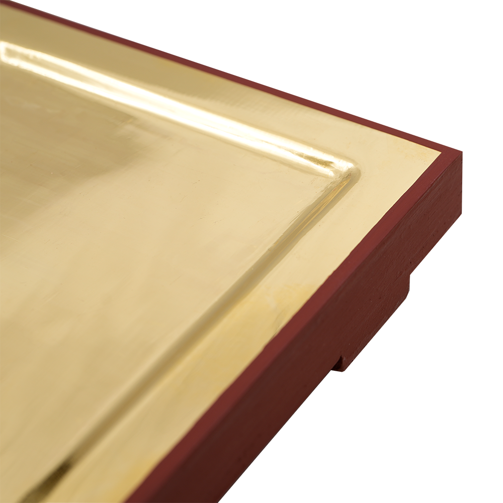 Once the wood panel is cut to the desired dimensions, our crafters carefully apply the 24k Gold Leaves into the prepared surface.