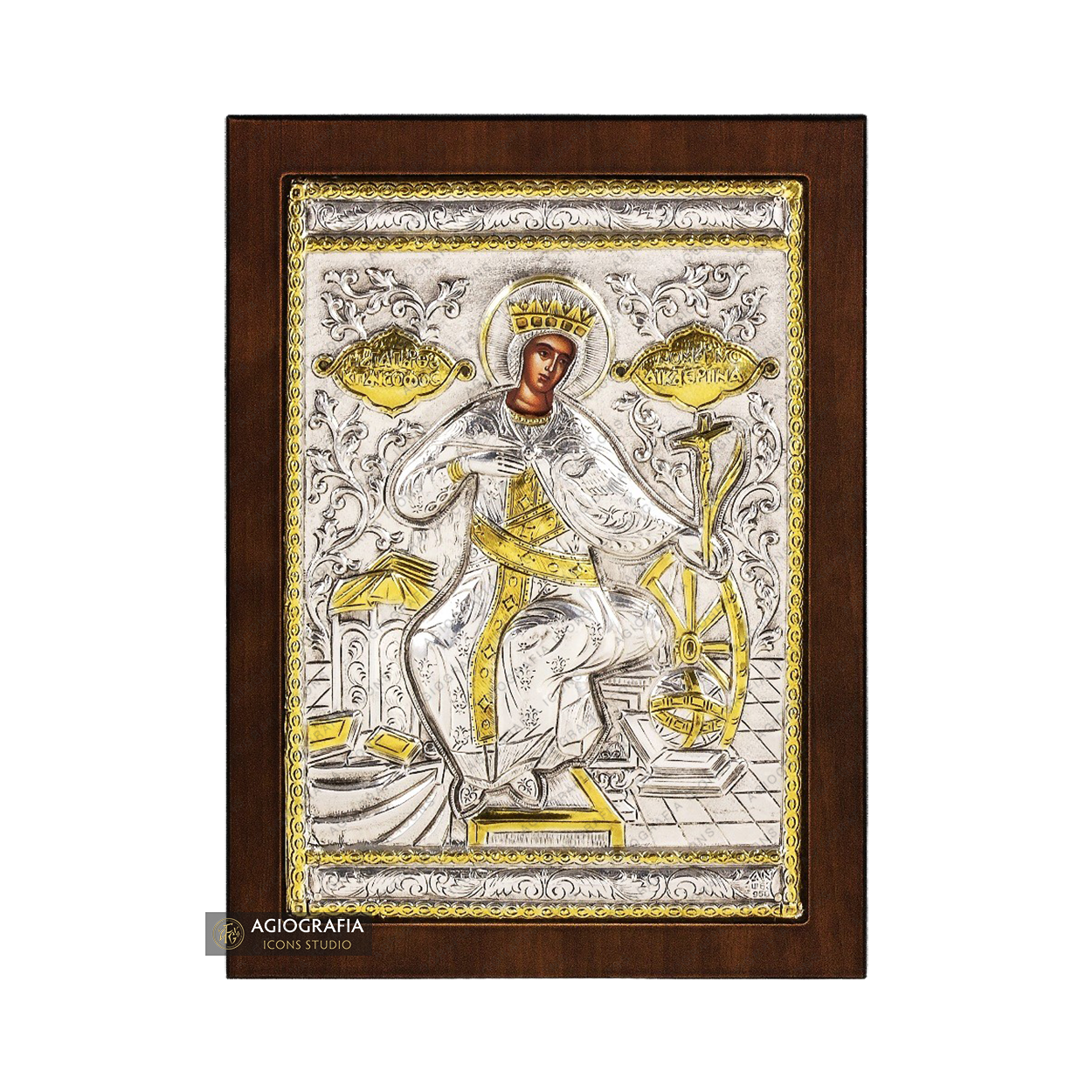 This is an authentic Silver Plated artwork with Gold details, crafted according to Byzantine technique and style. The theme is reproduced using Advanced Silk Screen Technique.