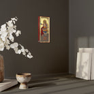 Un point de fixation est placé au dos de l'icône, ainsi que le certificat d'authenticité et de qualité. Chacune de nos icônes porte le titre et le logo uniques du studio.