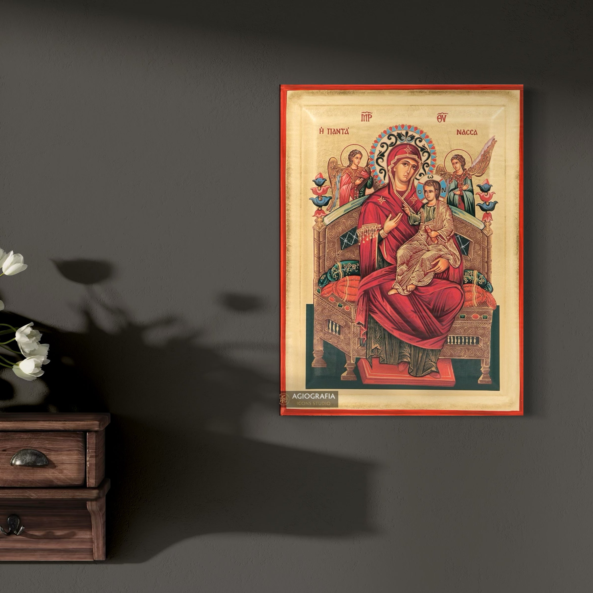 This is an authentic icon crafted according to Byzantine technique and style. All parts are made by hand and only the theme is reproduced using Advanced Silk Screen Technique.