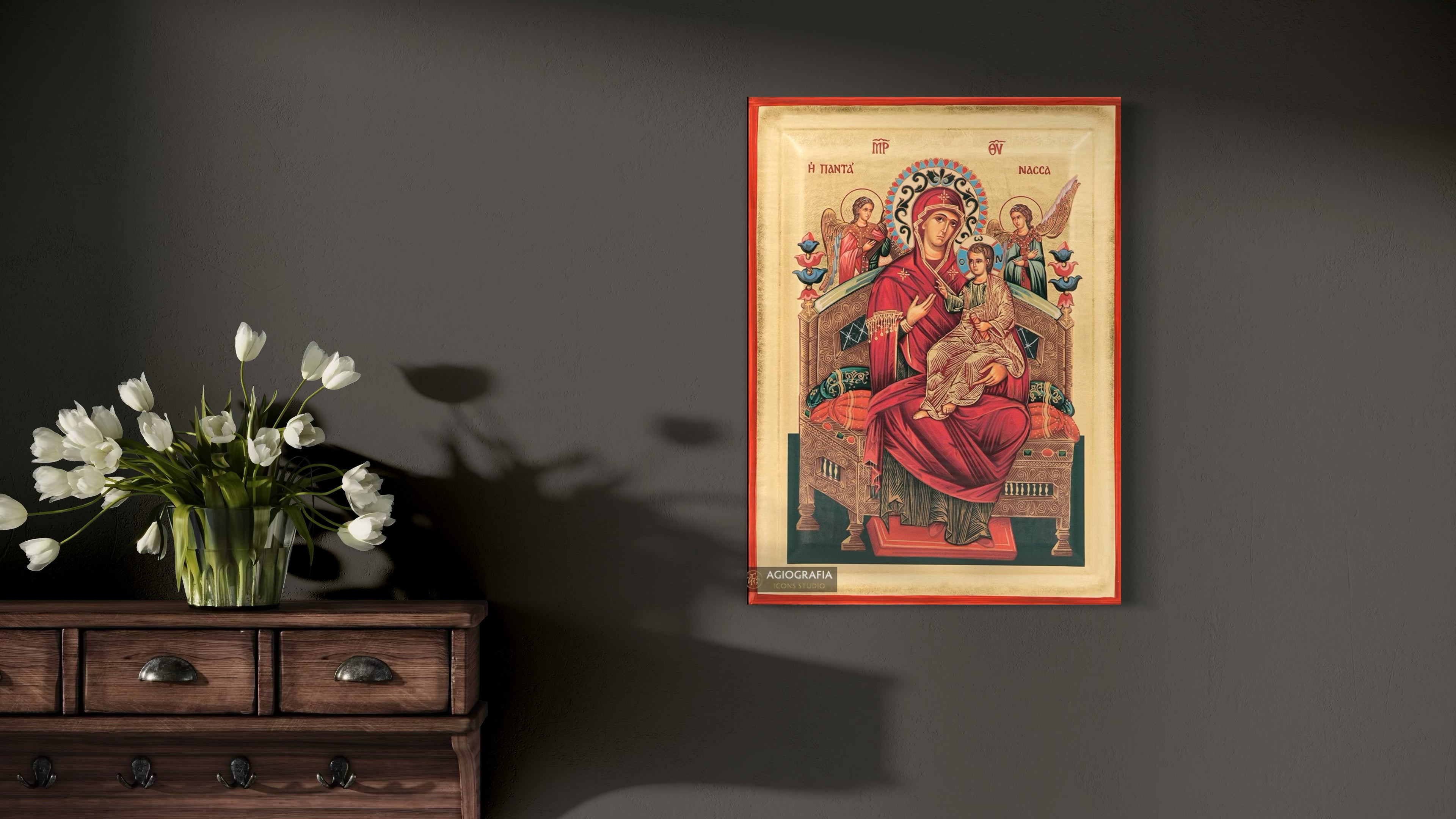 At the back of the icon, a mounting point is installed, accompanied by our Certificate of Authenticity and Quality. At the small sized icons a stand is also available. All of our artworks bear the studio’s distinctive title and logo.