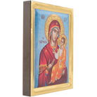 At the back of the icon, a mounting point is installed, accompanied by our Certificate of Authenticity and Quality. At the small sized icons a stand is also available. All of our artworks bear the studio’s distinctive title and logo.
