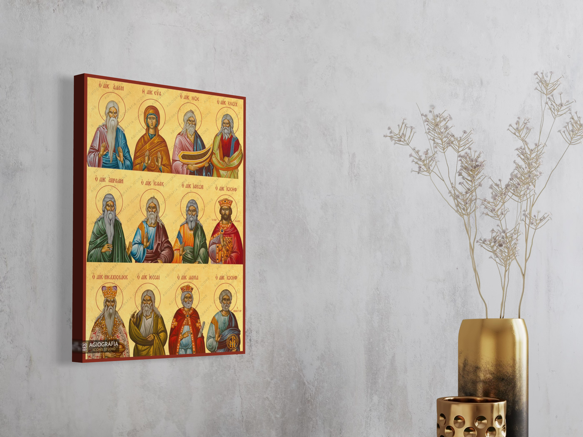 A mounting point is placed at the back of the icon, along with the Certificate of Authenticity and Quality. Each of our icons bears the studio's unique title and logo.