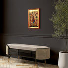 A mounting point is placed at the back of the icon, along with the Certificate of Authenticity and Quality. Each of our icons bears the studio's unique title and logo.