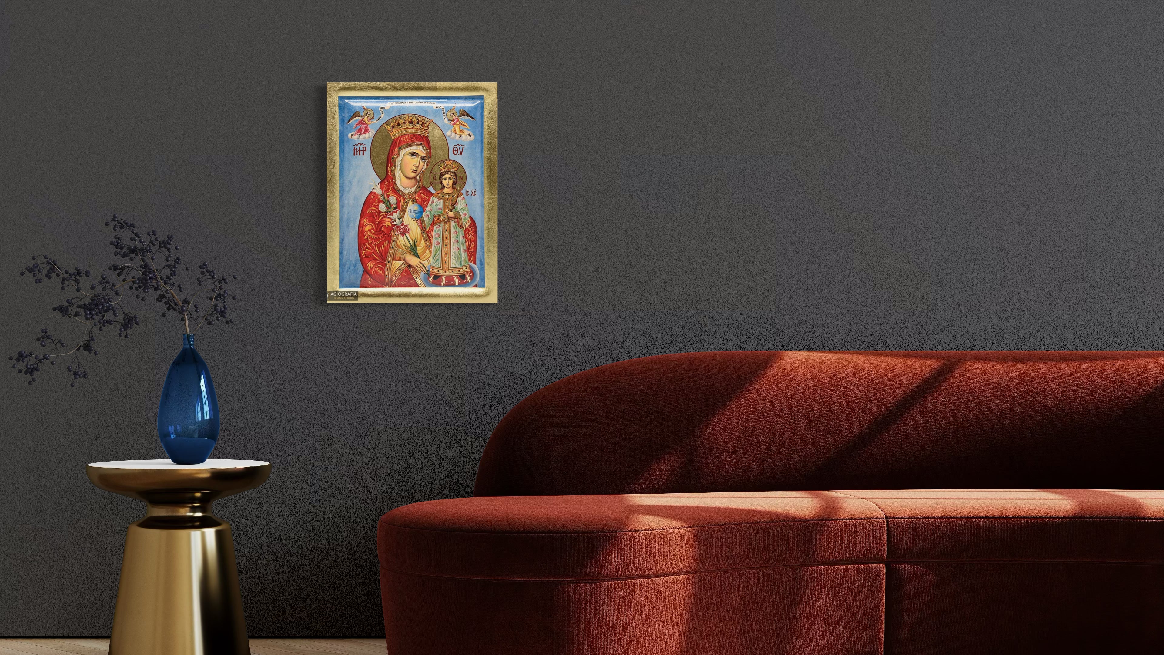 Ta ikona jest wykonana z drewna, a tło jest ręcznie wykonane z liści złota. Motyw jest odtwarzany bezpośrednio na płótnie, przy użyciu wysokiej klasy sprzętu, zgodnie z techniką sitodruku. Jest dostarczany w odpowiednim i bezpiecznym opakowaniu. Jeśli jest to specjalny prezent, możesz opcjonalnie dokonać uaktualnienia do luksusowego etui na ikony, wybierając opcję Premium Gift Wrap na stronie Koszyka. Każda ikona jest wykonywana po złożeniu zamówienia, a po przygotowaniu do wysyłki otrzymasz numer śledzenia przesyłki kurierskiej.