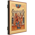 This is a 100% Handwritten artwork crafted according to Byzantine technique and style, totally painted by hand with 24 karats Gold Leaves background. Once the theme is painted by our skilled craftsmen, a mounting point and the Certificate of Authenticity and Quality are installed at the back of the icon.