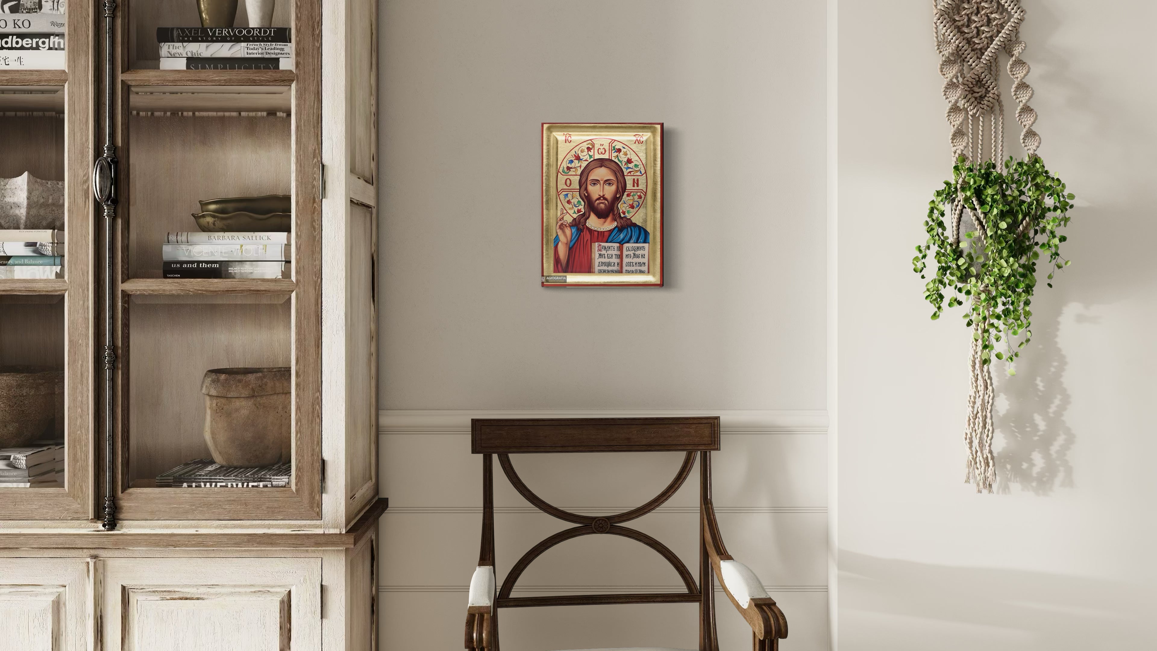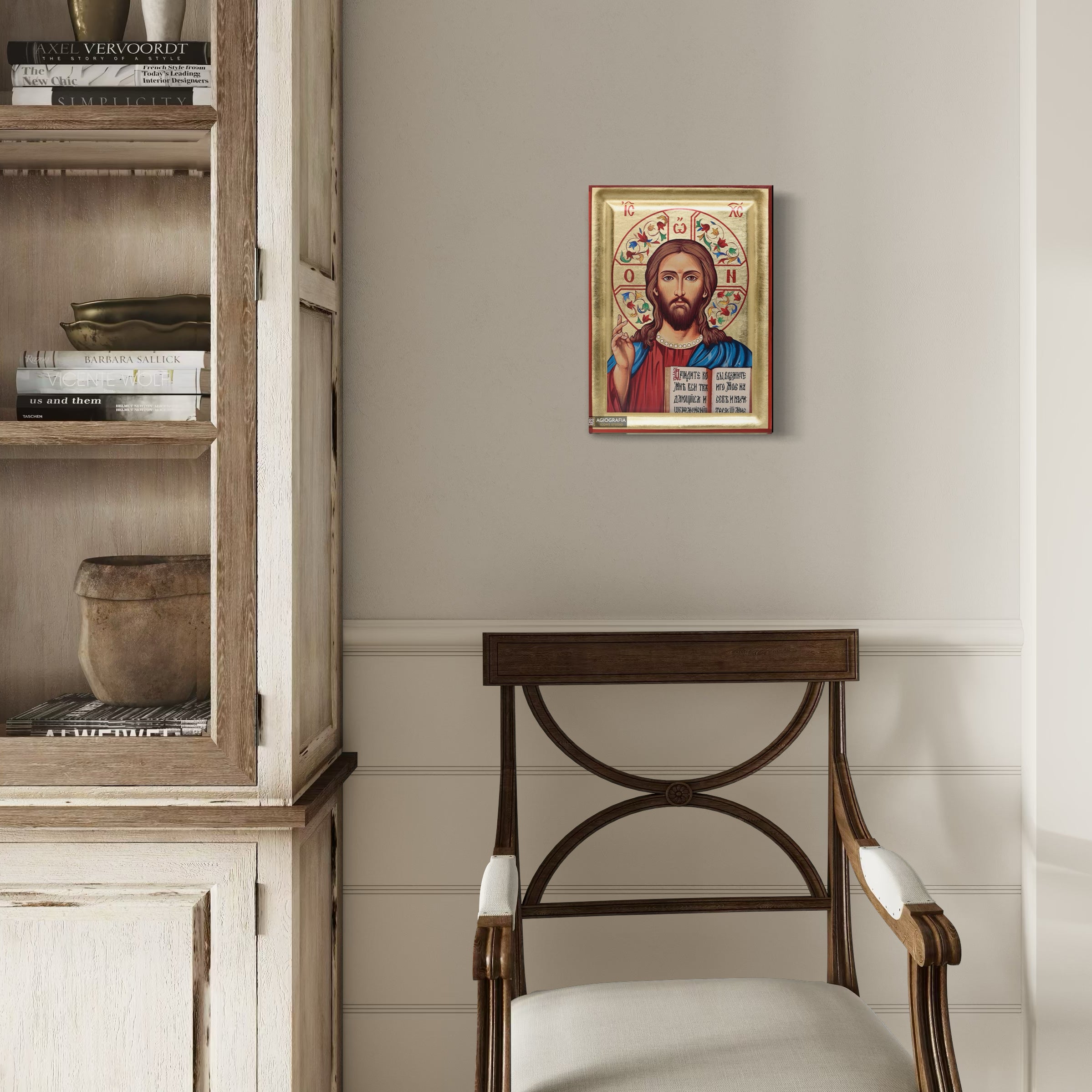 At the back of the icon, a mounting point is installed, accompanied by our Certificate of Authenticity and Quality. At the small sized icons a stand is also available. All of our artworks bear the studio’s distinctive title and logo.