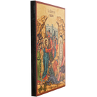 Эта икона изготовлена на плоском дереве. Тема воспроизведена в технике Gold Print, а фон выполнен из состаренной золотой фольги. Сзади есть точка крепления. Каждая икона изготавливается после вашего заказа, и вы получите номер отслеживания курьера, как только она будет готова к отправке.