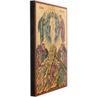 Эта икона изготовлена на плоском дереве. Тема воспроизведена в технике Gold Print, а фон выполнен из состаренной золотой фольги. Сзади есть точка крепления. Каждая икона изготавливается после вашего заказа, и вы получите номер отслеживания курьера, как только она будет готова к отправке.